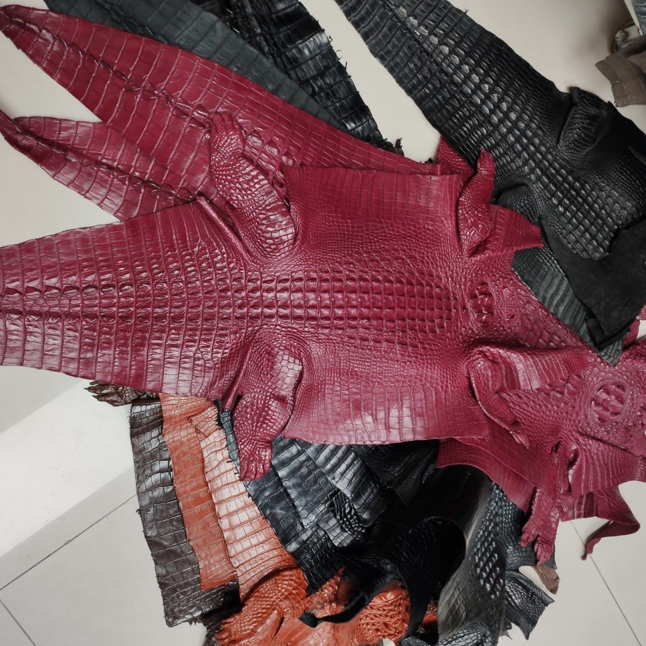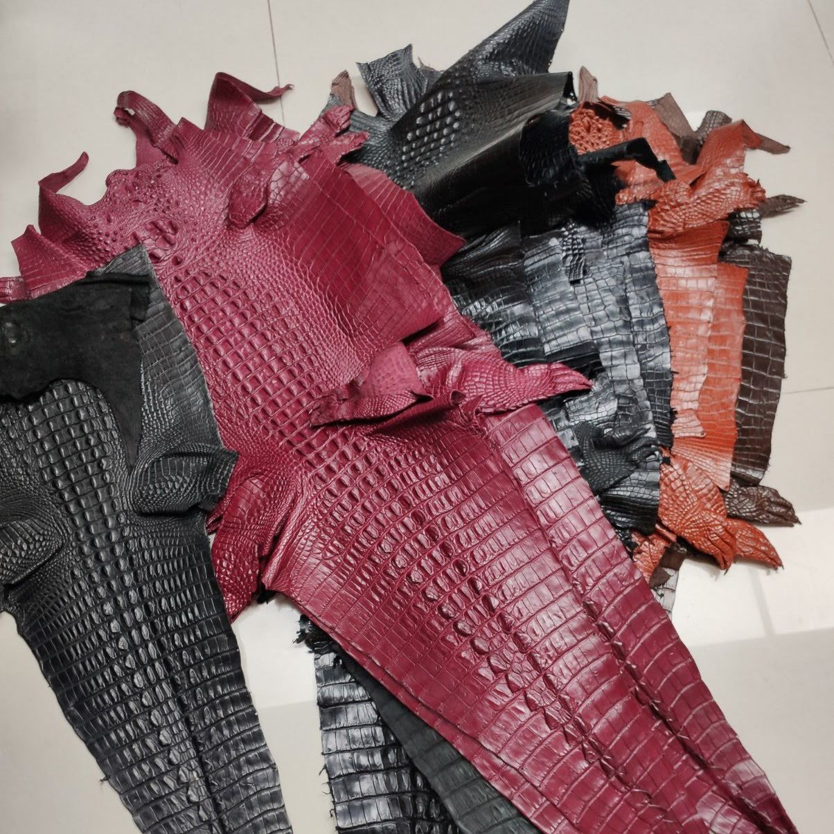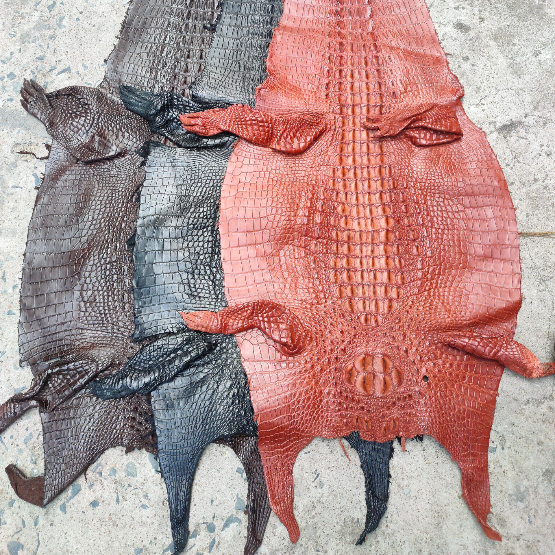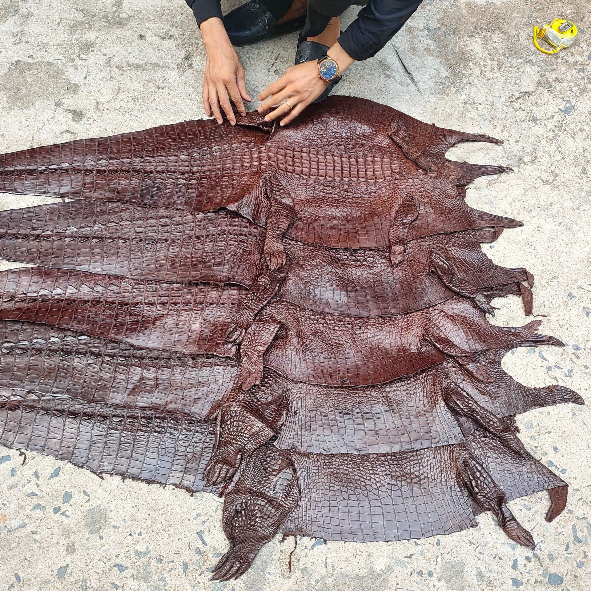 Mua da cá sấu mổ bụng nguyên con với nhiều kích thước. Mức giá của từng loại được tính theo bề rộng của tấm da. Kho da cá sấu tại shop với rất nhiều màu sắc khác nhau và đáp ứng được gần như mọi nhu cầu của bạn. Nếu bạn muốn chọn màu sắc vui lòng liên hệ với nhân viên để được tư vấn.