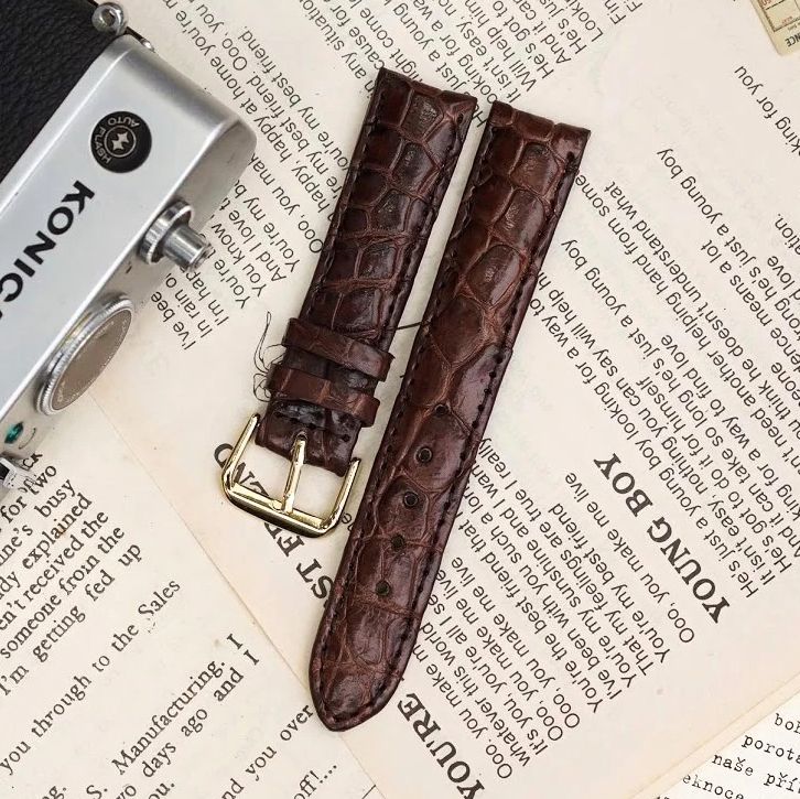 Dây đồng hồ da cá sấu size 20 màu nâu cafe đẹp cá tính