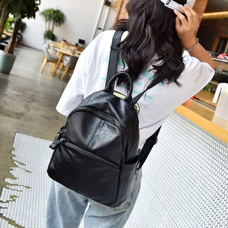 - Kết hợp với một set đồ cá tính, chiếc balo sẽ giúp các bạn nữ thêm nổi bật, phong cách và cuốn hút khi dạo phố. Đặc biệt, chất liệu da bò xịn giúp balo có độ bền rất cao nên các nàng có thể yên tâm sử dụng mà không lo bong tróc hay nổ da làm mất đi vẻ thẩm mỹ của balo.