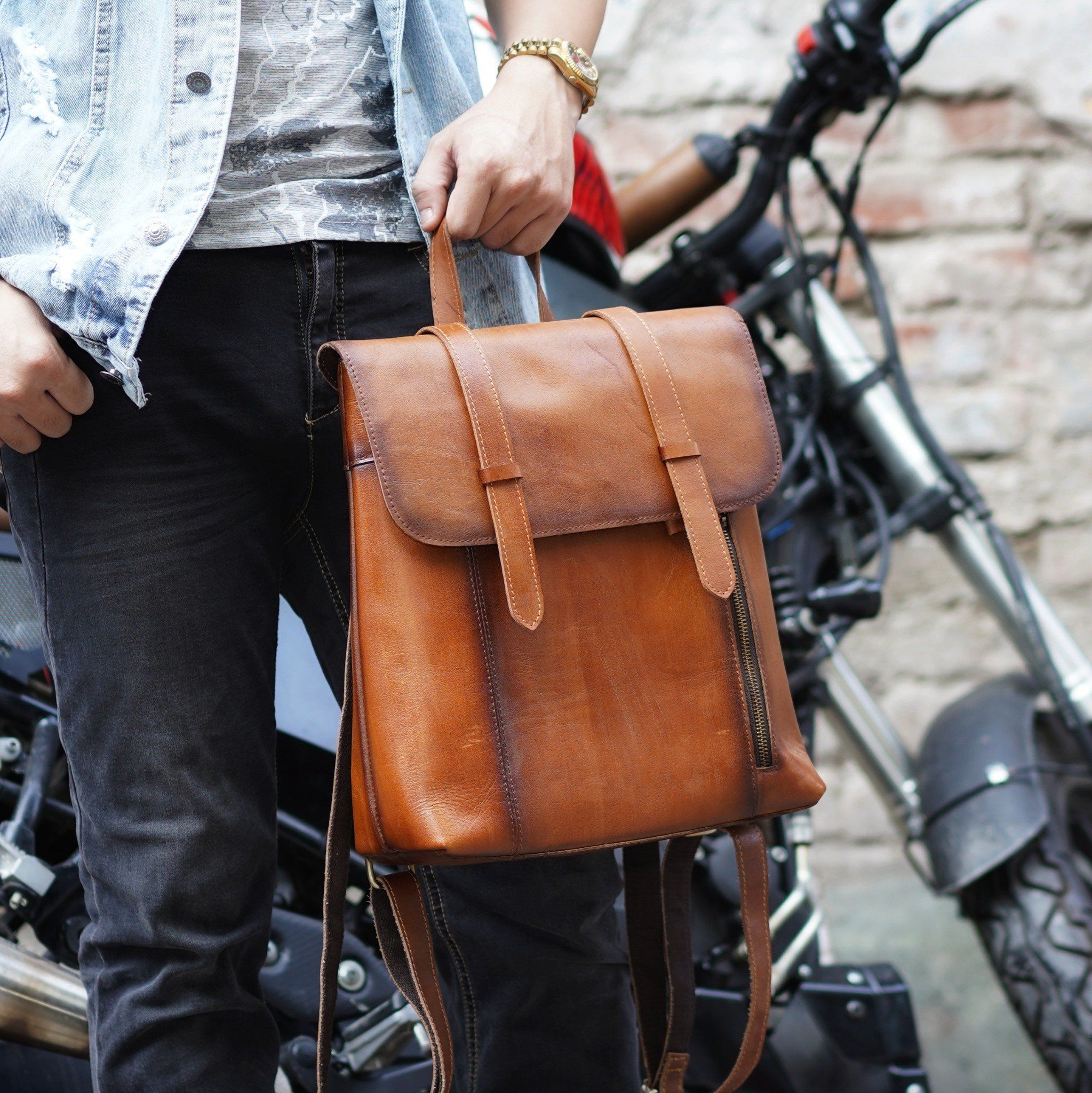 Balo Retro da thật Unisex loại mỏng cá tính - 776047