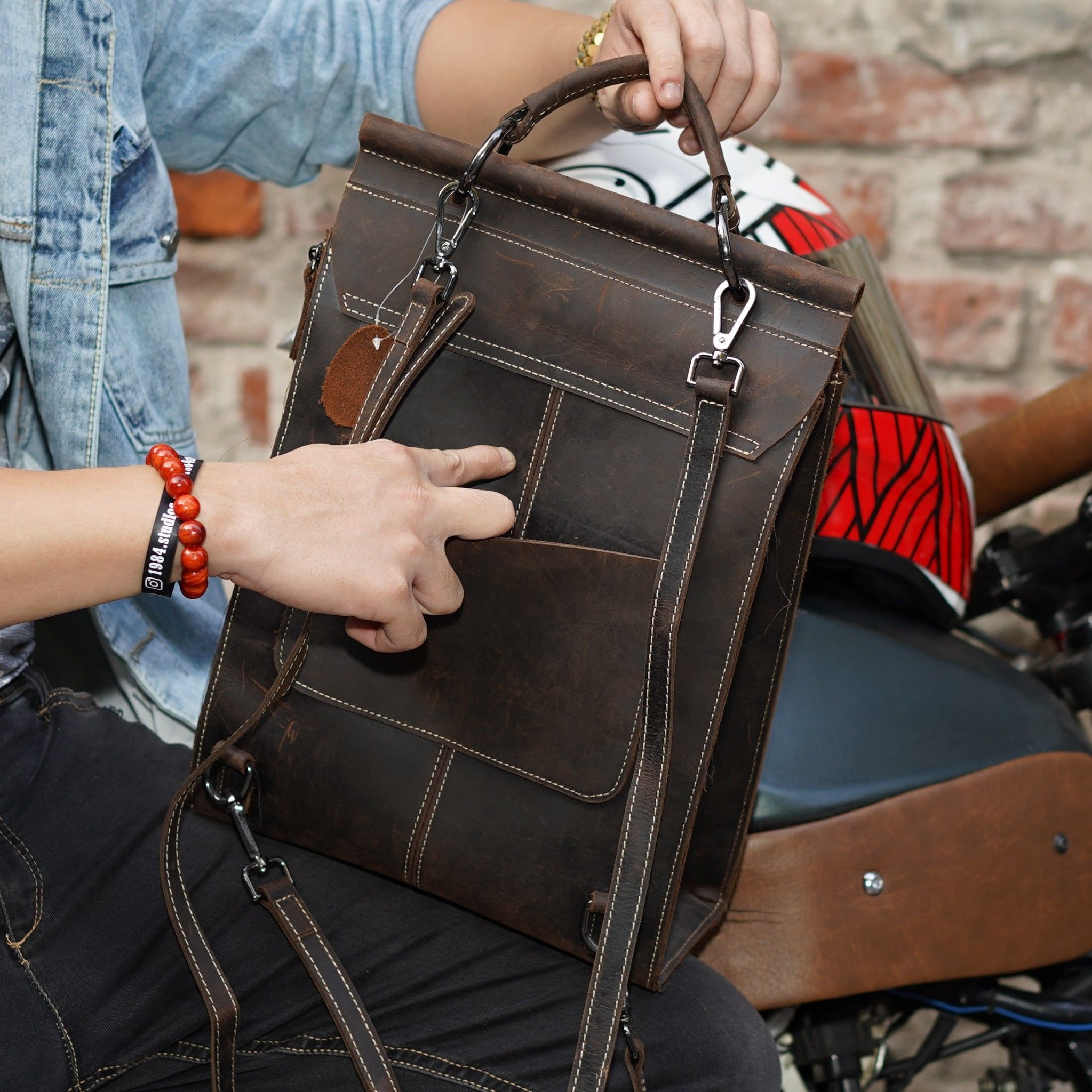 - Balo da thật unisex 598223 với chất liệu da bò sáp nhập khẩu 100% chống thấm nước màu nâu đen sang trọng. Da thuộc cao cấp cùng thiết kế tỉ mỉ tinh tế đã tạo nên mẫu balo trên cả tuyệt vời.
