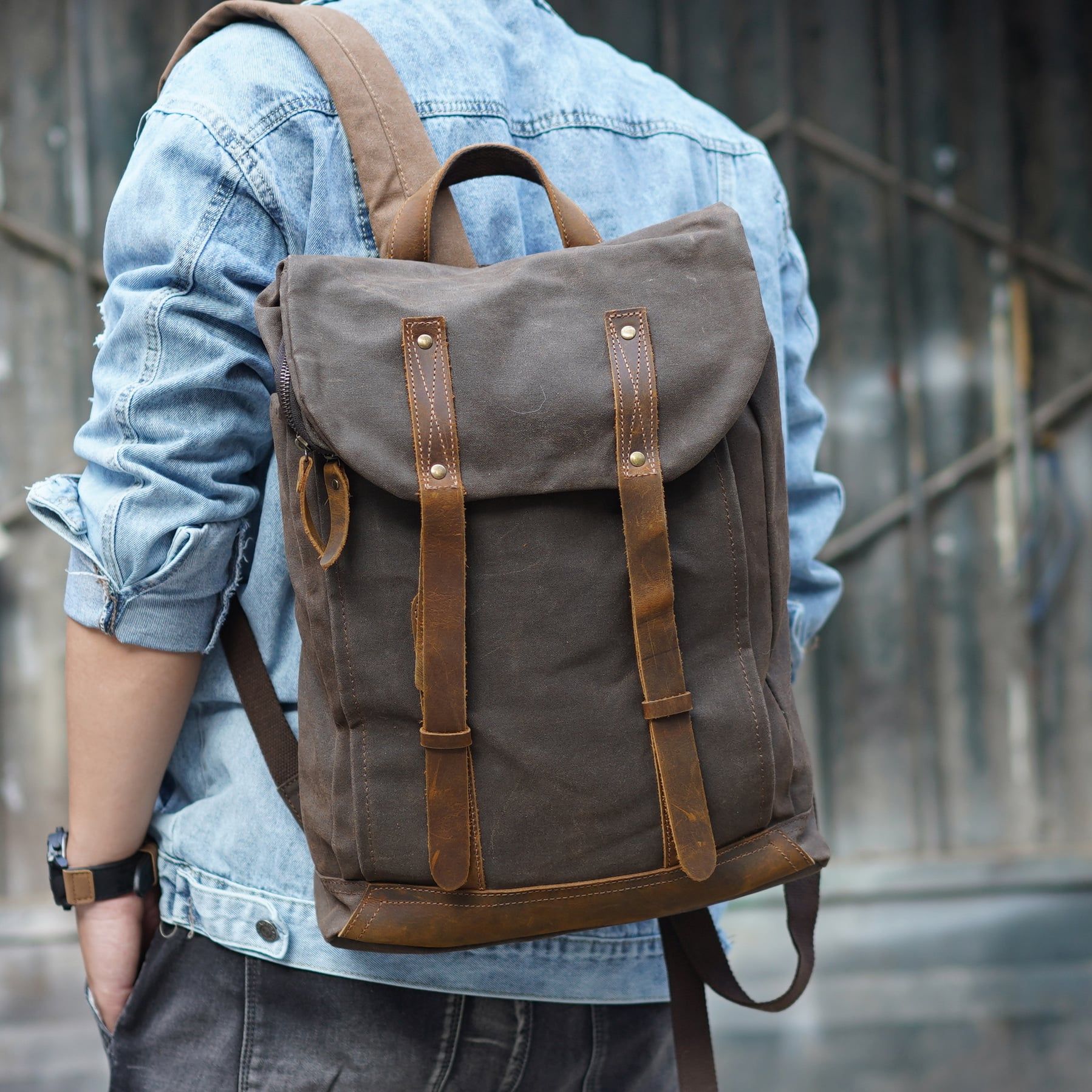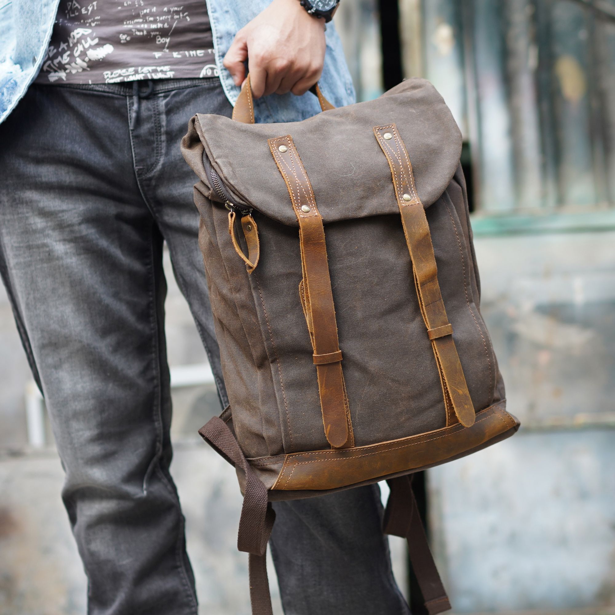 - Balo được làm chủ yếu từ chất liệu vải bố chuyên dụng, kết hợp với quay đeo bằng da bò thật tạo nên chiếc balo cá tính và thời trang