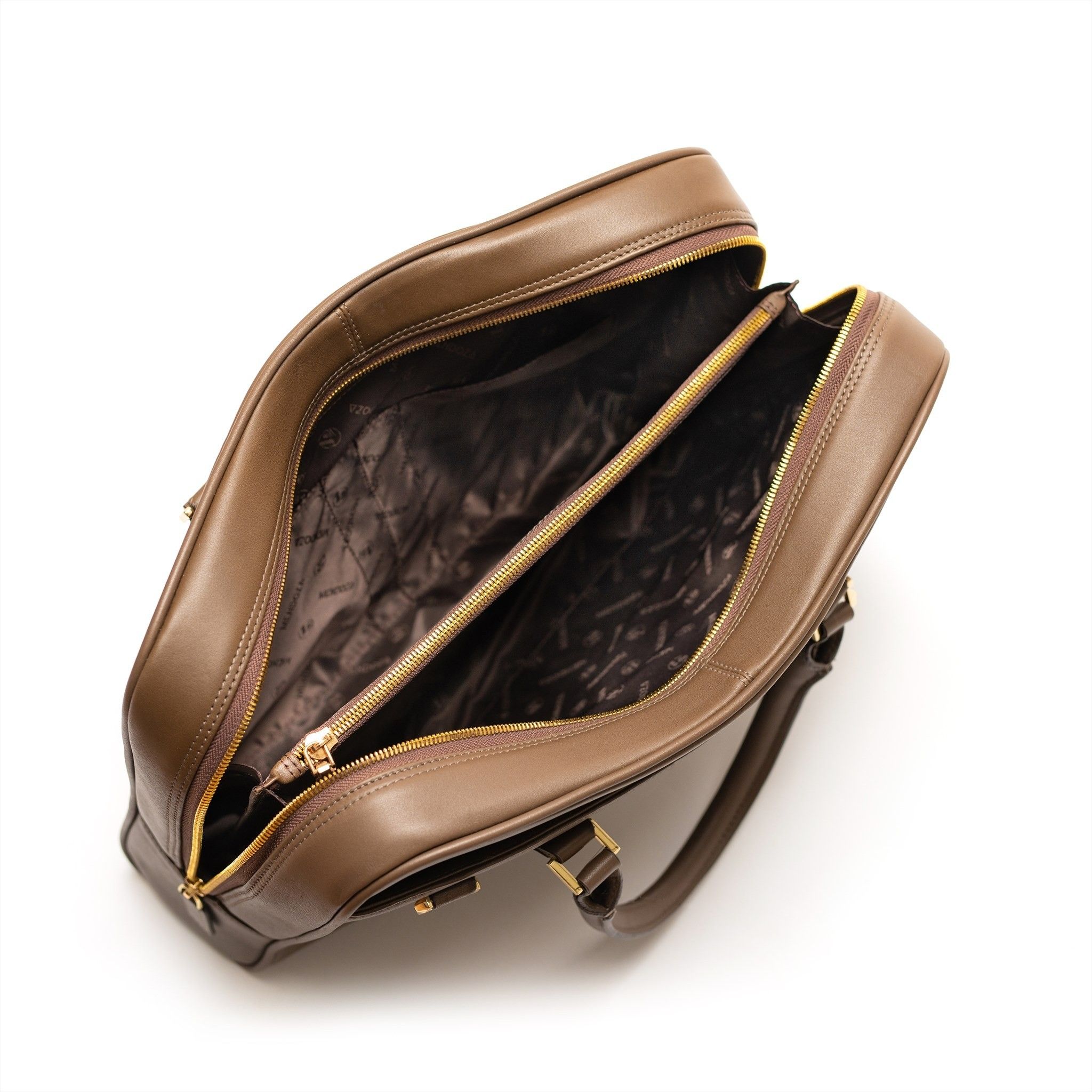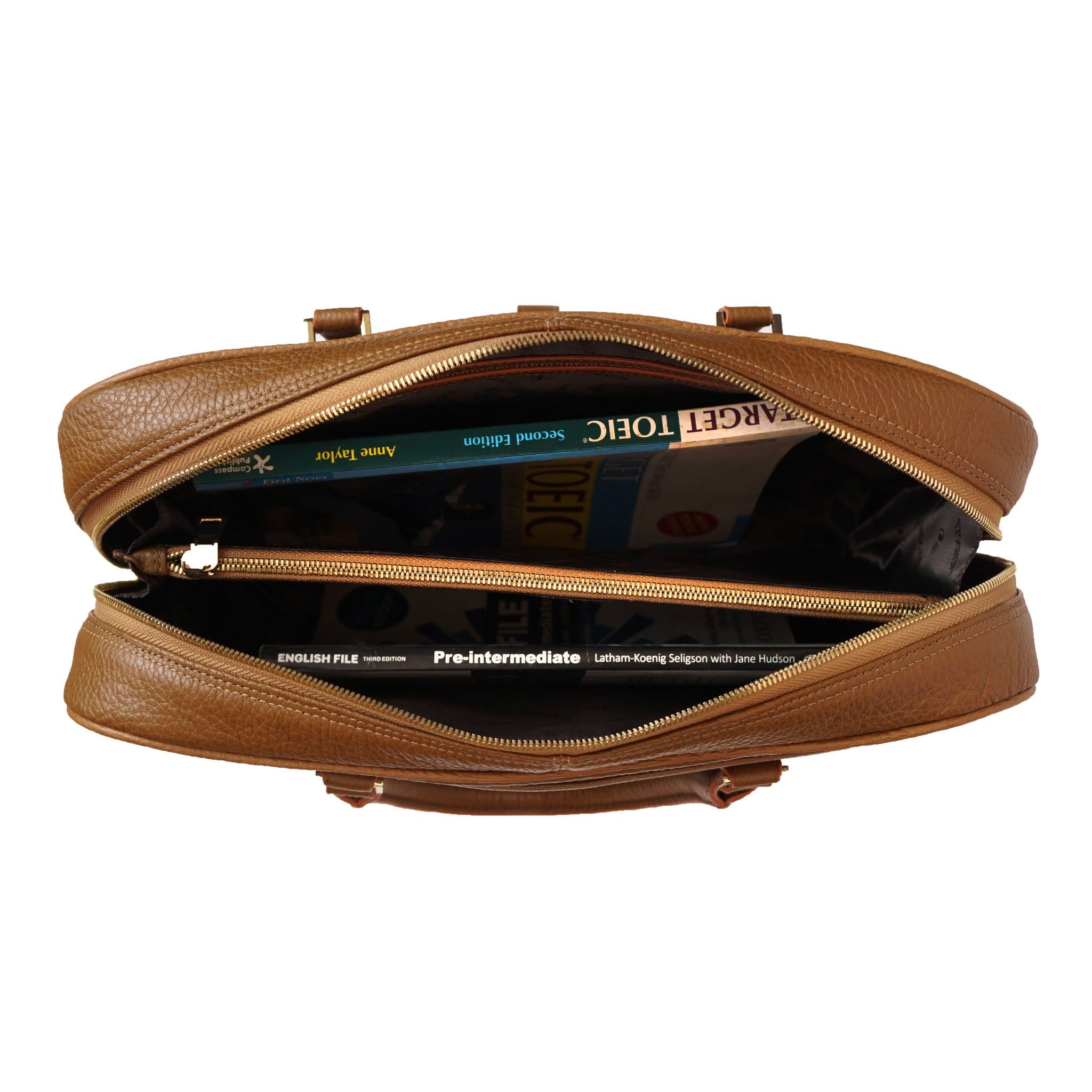 - Phía trong cặp được chia thành 2 ngăn lớn, cùng nhiều ngăn nhỏ, có thể chứa được laptop, điện thoại, ví tiền, đồ dùng cá nhân, mỹ phẩm mà vẫn giữ được form dáng cố định ban đầu của sản phẩm