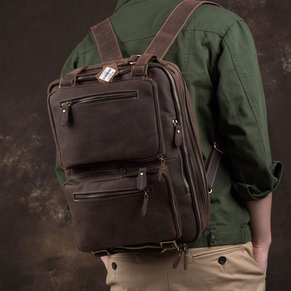 Cặp nam kiêm Balo da bò sáp nhiều ngăn đa năng - 1012248