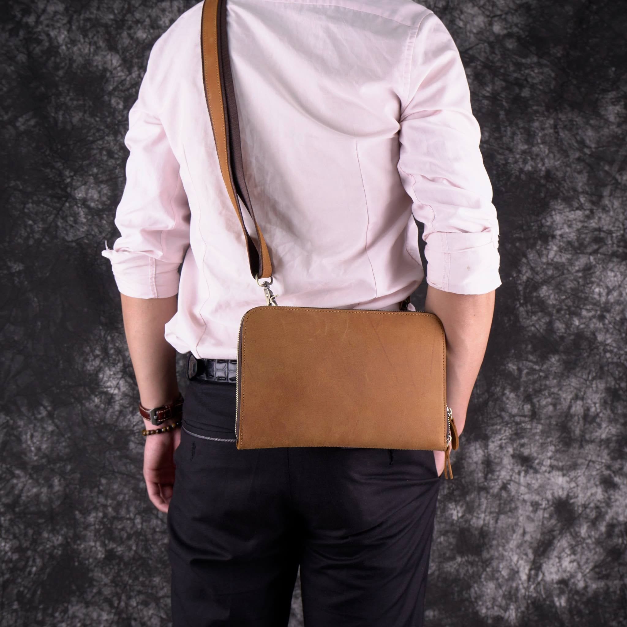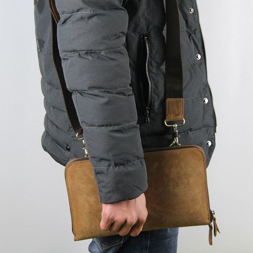 Clutch da ngựa điên mềm có dây đeo chéo - 622827