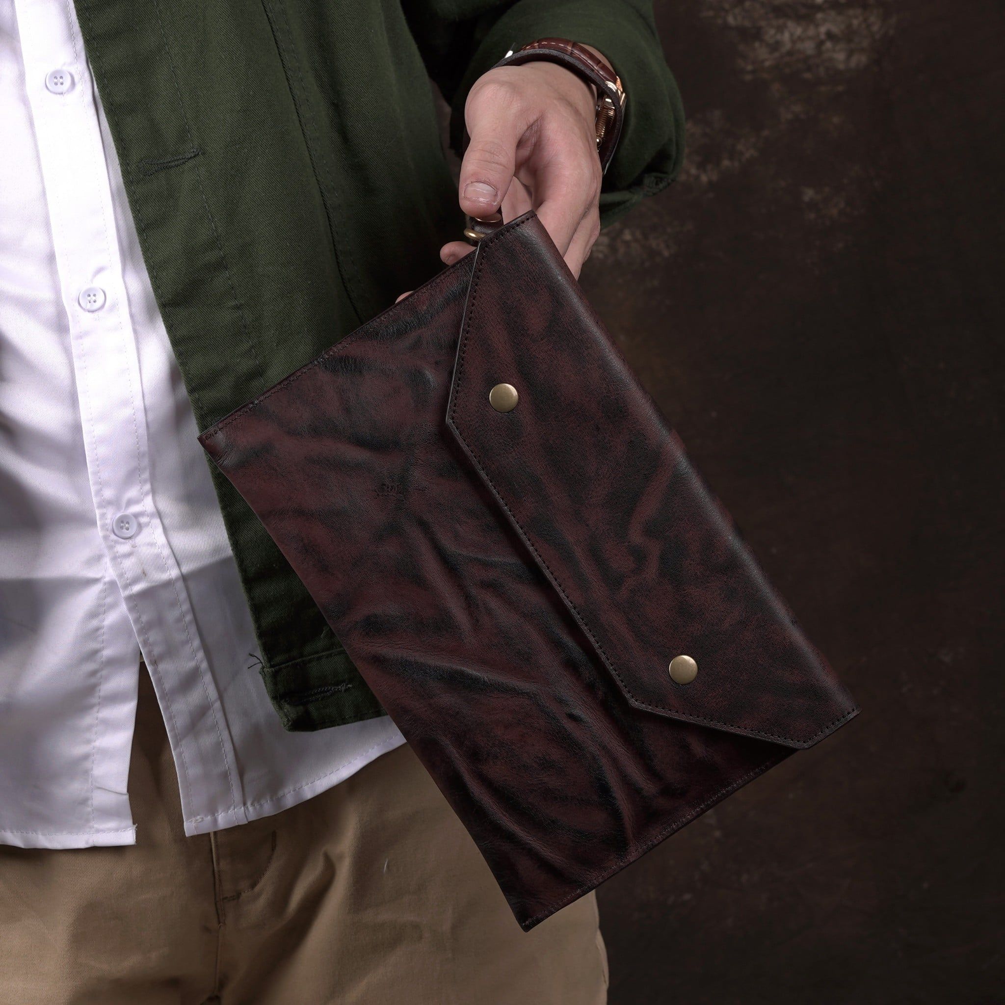 - Chiếc Clutch được là từ da bò cao cấp ,siêu bền, siêm mềm mại ,không bong tróc hay nổ da trong quá trình sử dụng giúp người dùng hết sức yên tâm.