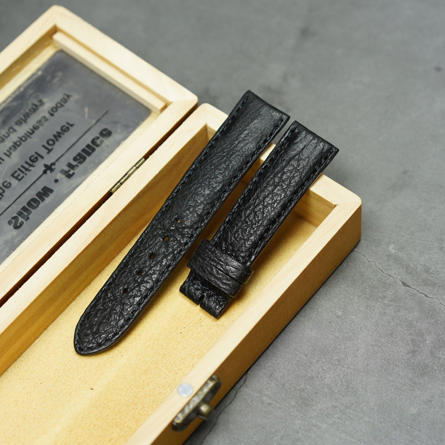 Dây đồng hồ da bò bền đẹp size 20 - Đen