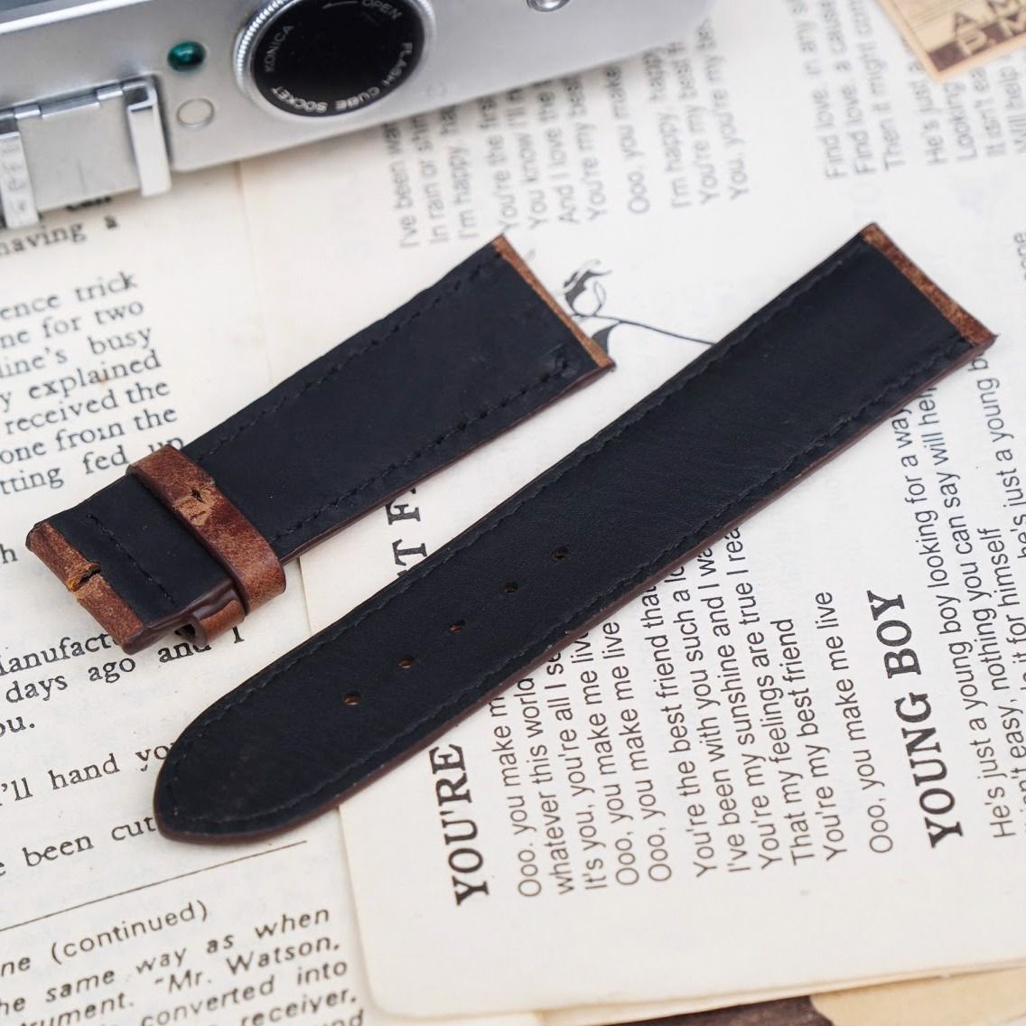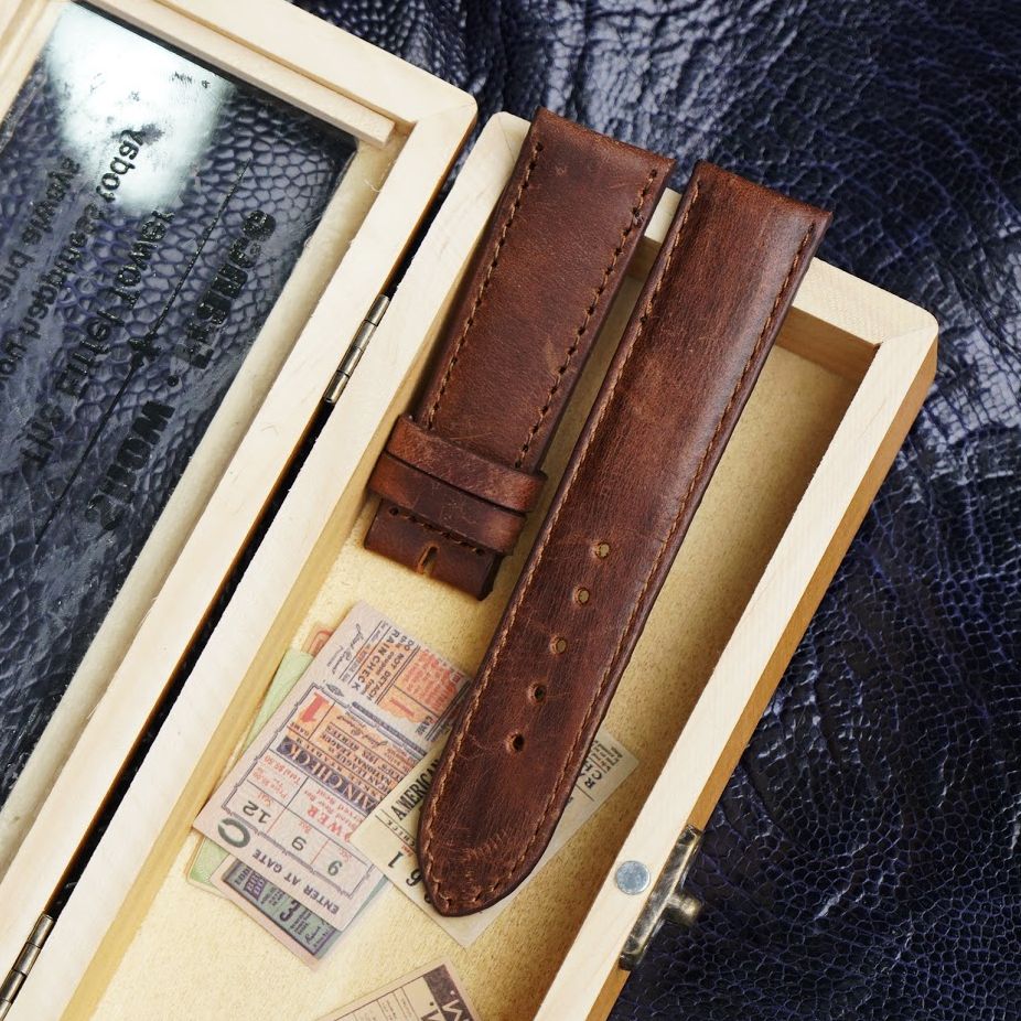Dây đồng hồ da bò size 20 màu nâu cá tính