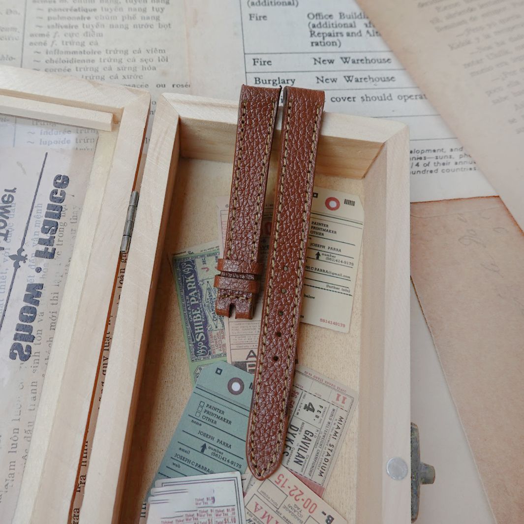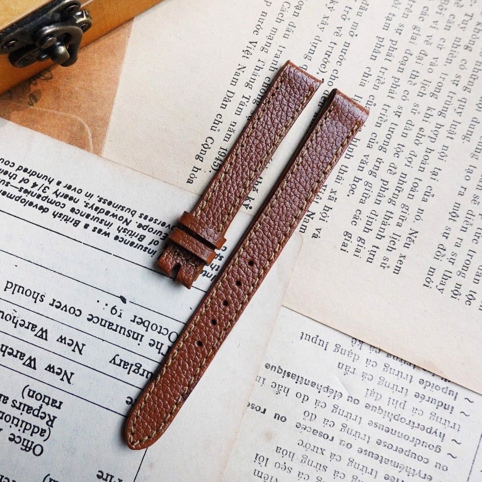 Dây đồng hồ size 10 da bò bền dai - Nâu