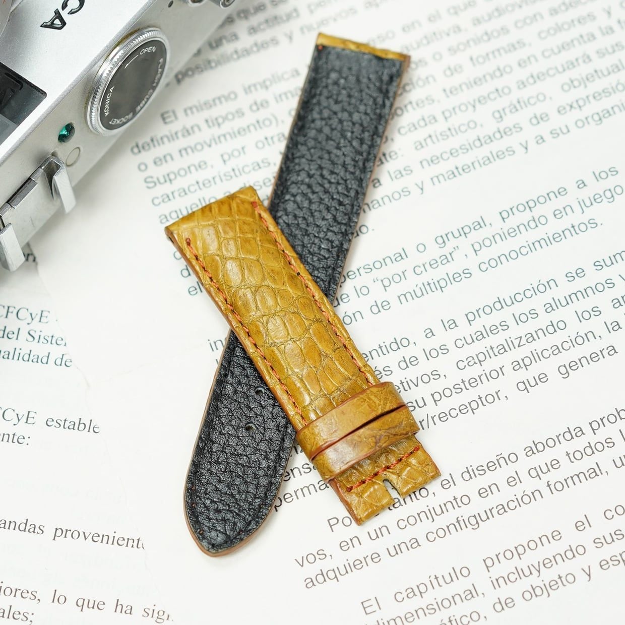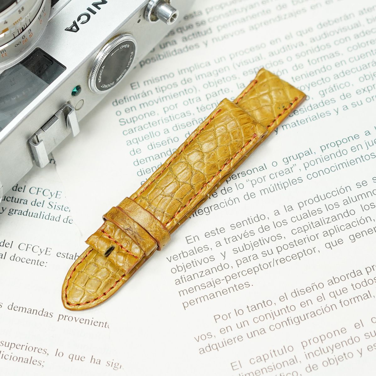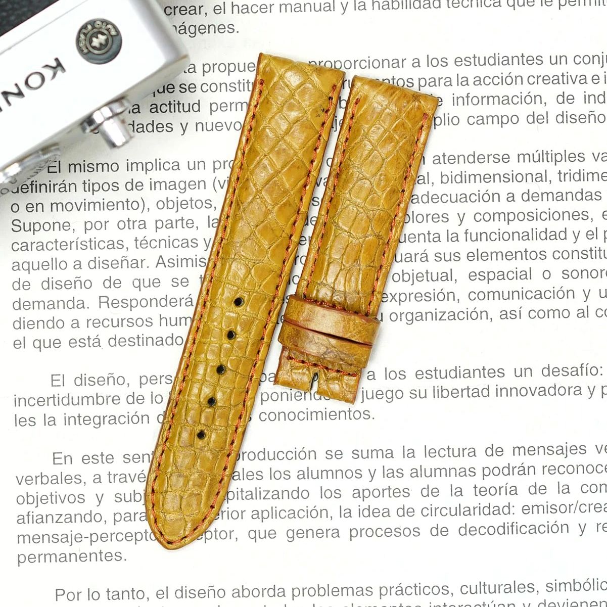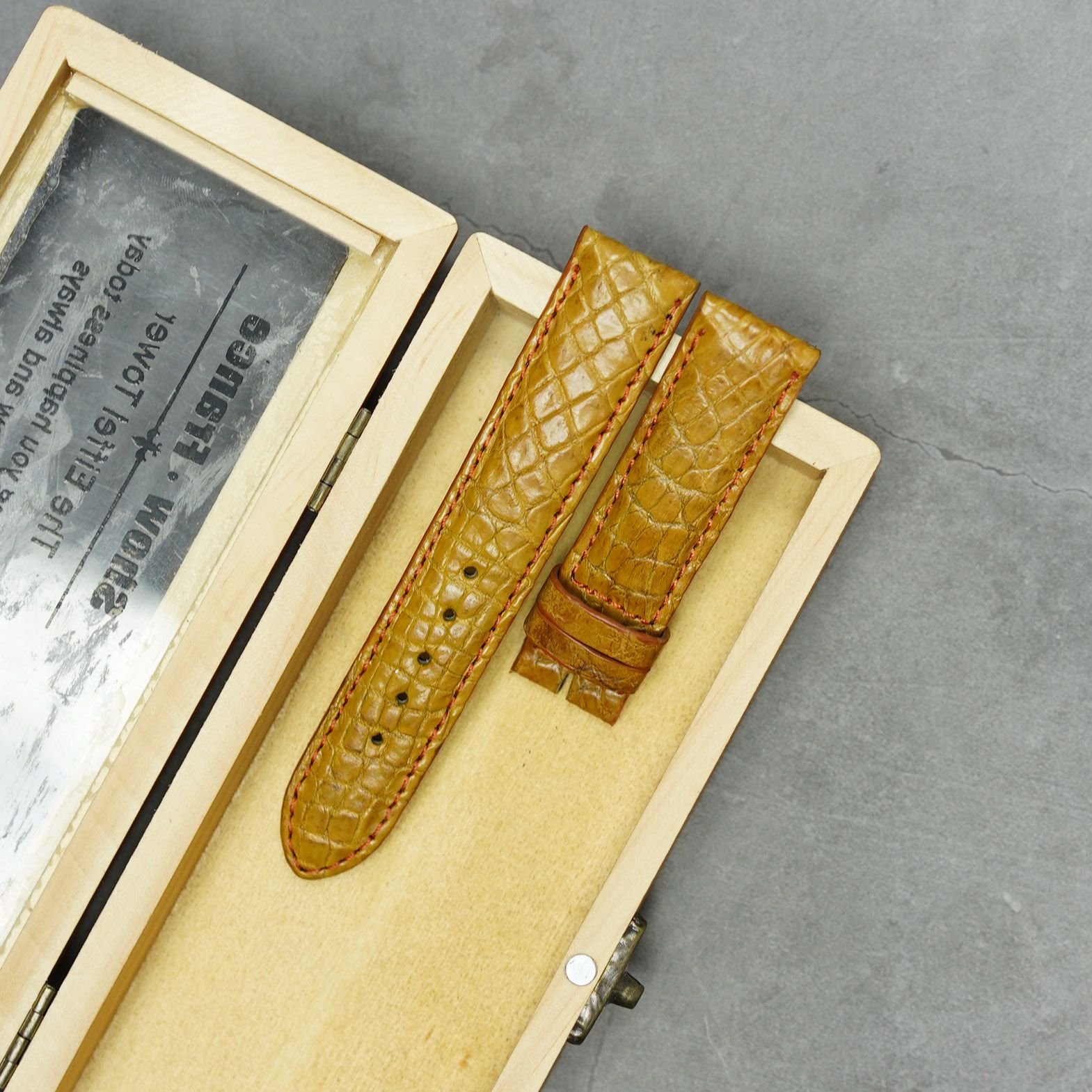 Dây đồng hồ size 20 da cá sấu - Nâu vàng