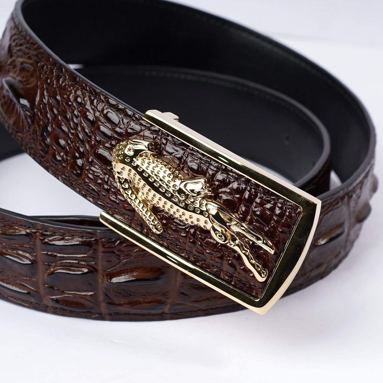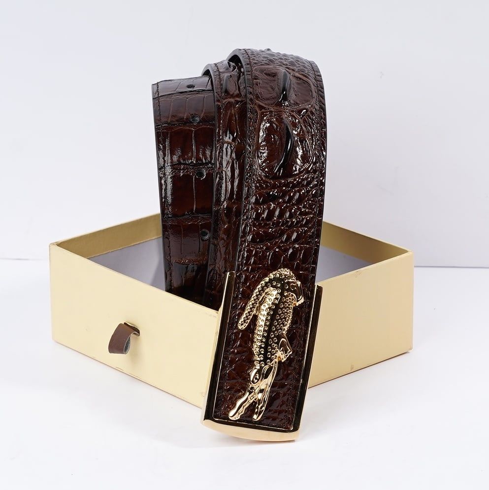 Dây lưng da cá sấu bản 115cm khóa vàng - 1378023