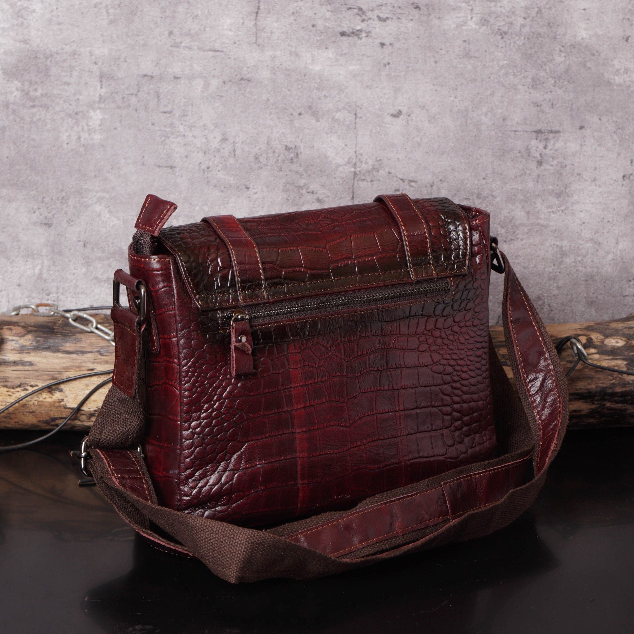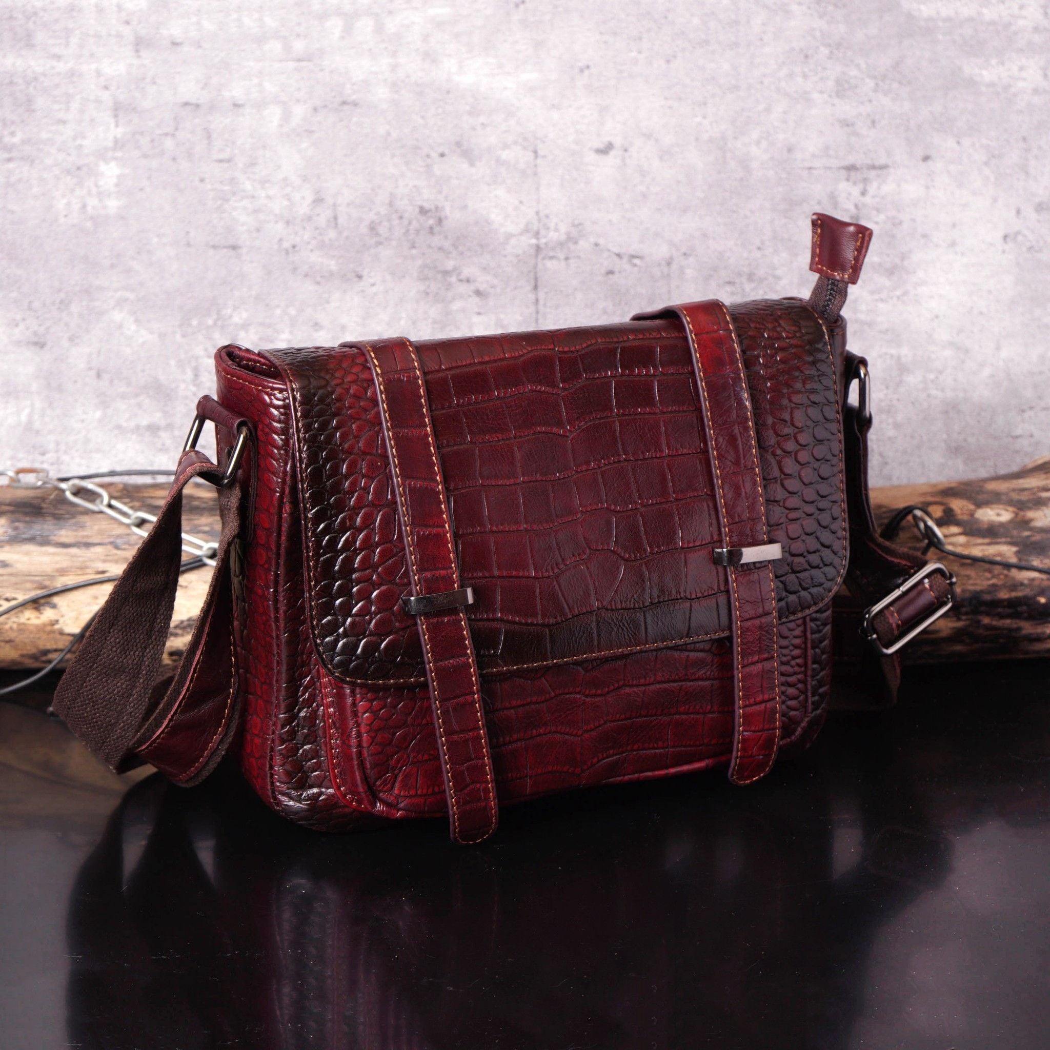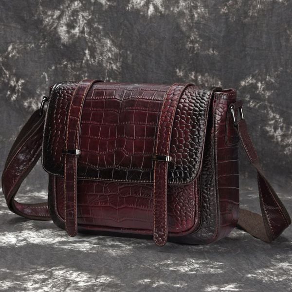 Túi đeo chéo da bò vân cá sấu - 776041