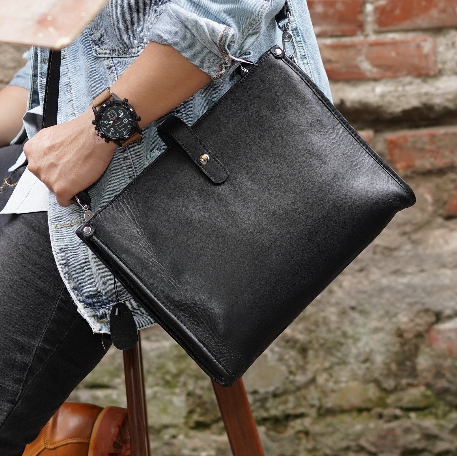 Sale Clear mẫu Túi cầm tay kiêm đeo chéo đựng Ipad da thật dáng Classic - 1022828