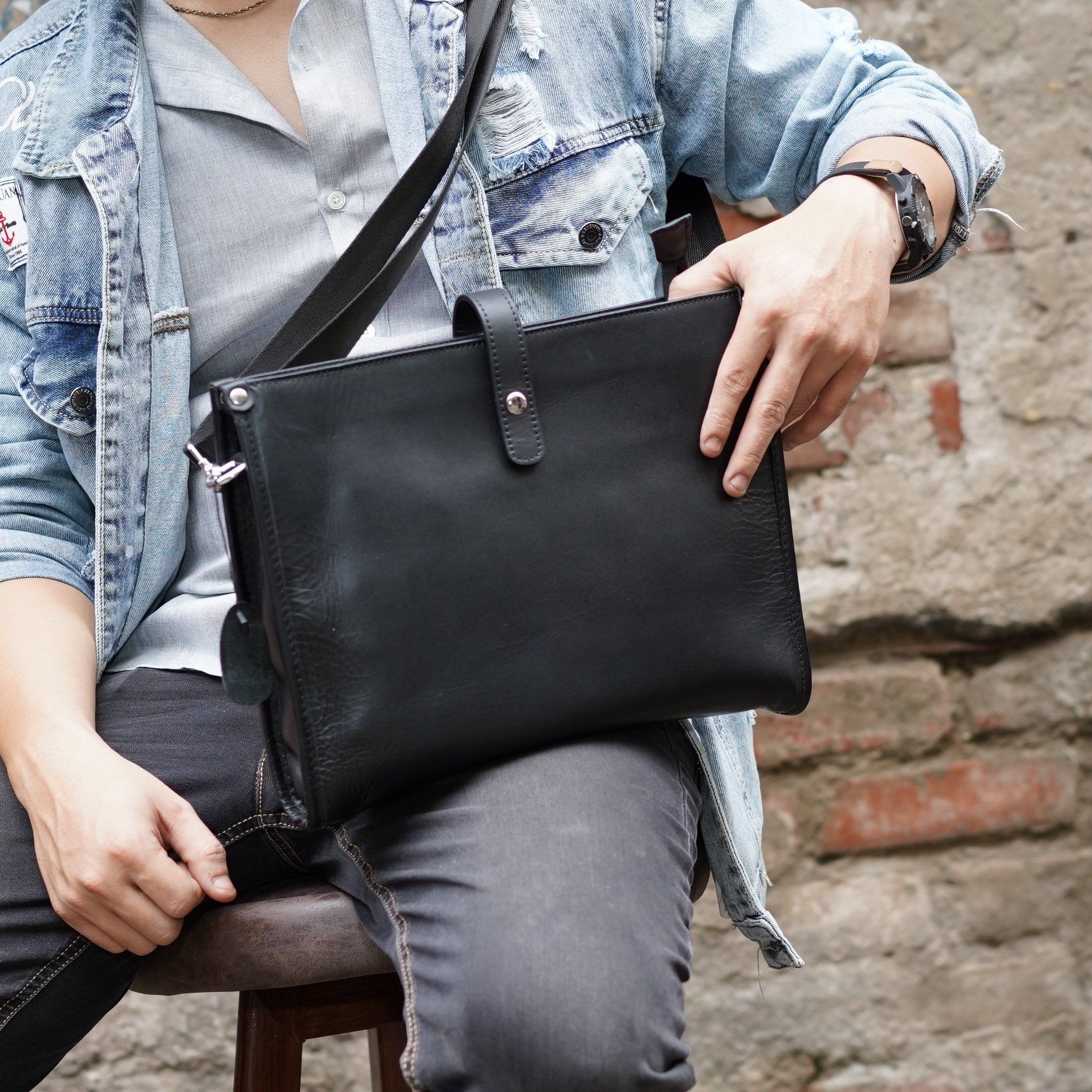 - Với một chiếc túi da đeo chéo vừa nhỏ gọn, vừa tiện lợi và thời trang như 1022828 rất đáng để các chàng trai sắm cho mình một chiếc bên mình.