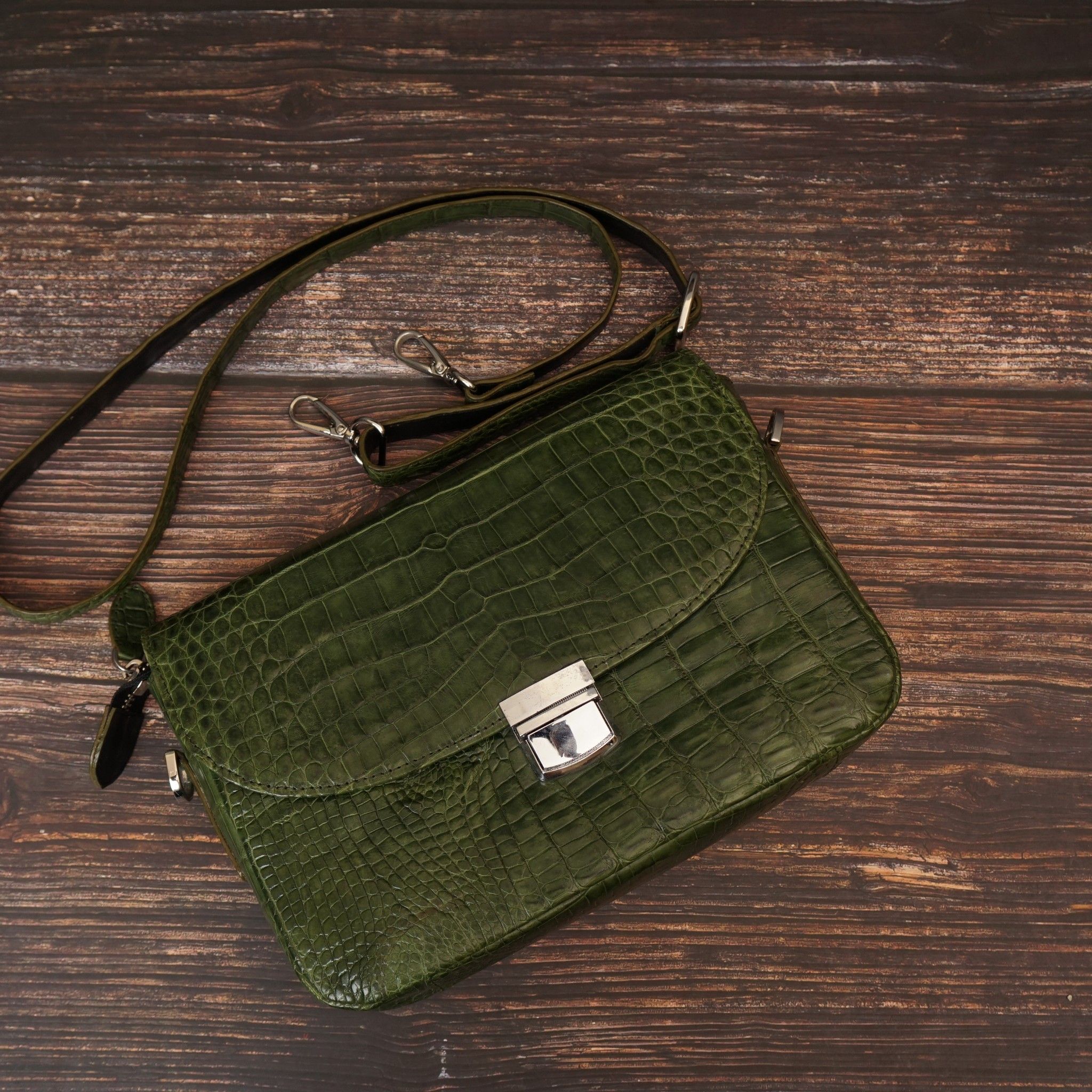 - Chất liệu: Da cá sấu