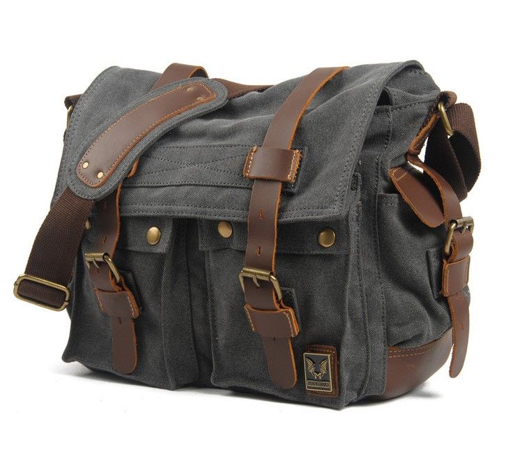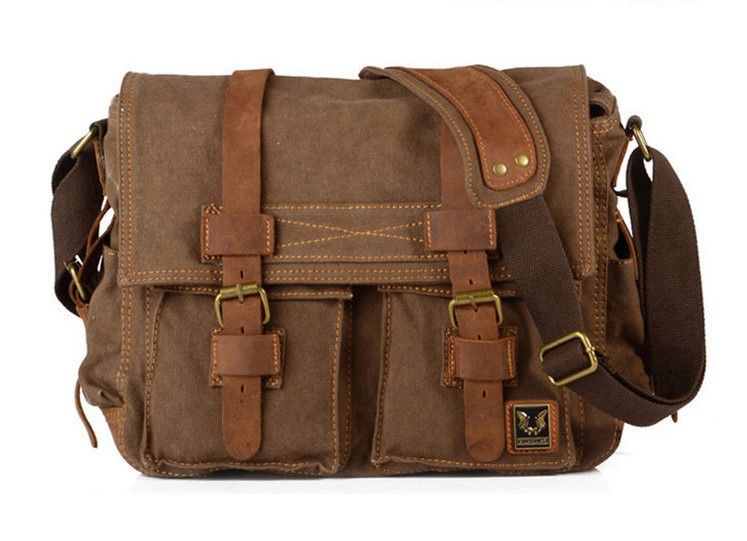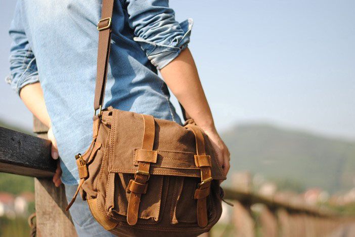Cặp - Túi đeo chéo lớn vải bố chống nước quai da sáp