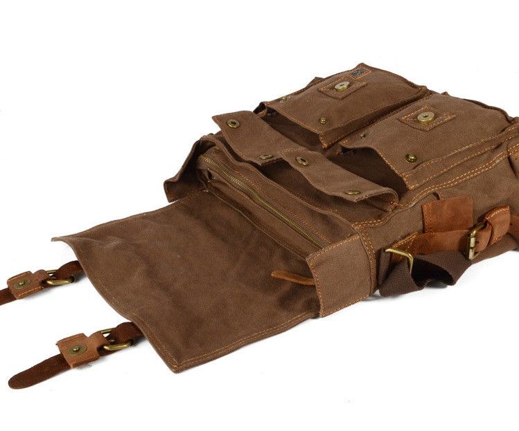 Cặp - Túi đeo chéo lớn vải bố chống nước quai da sáp - 101241