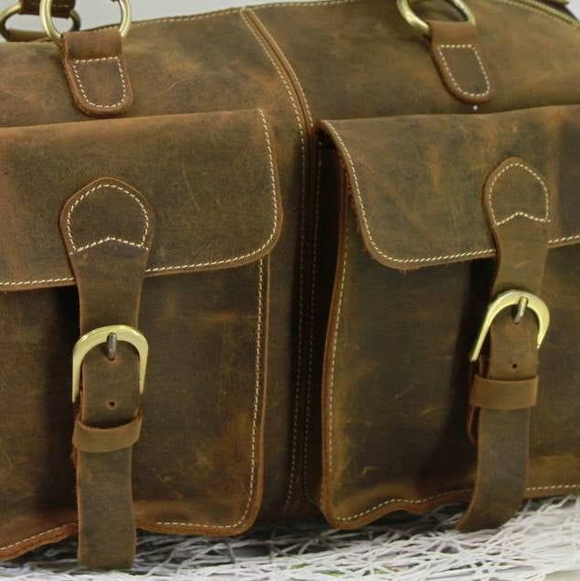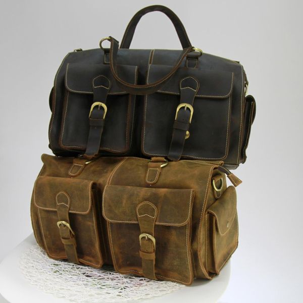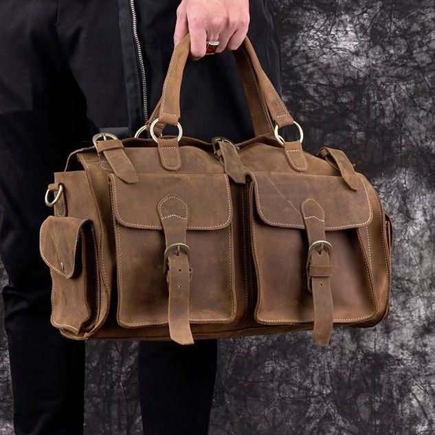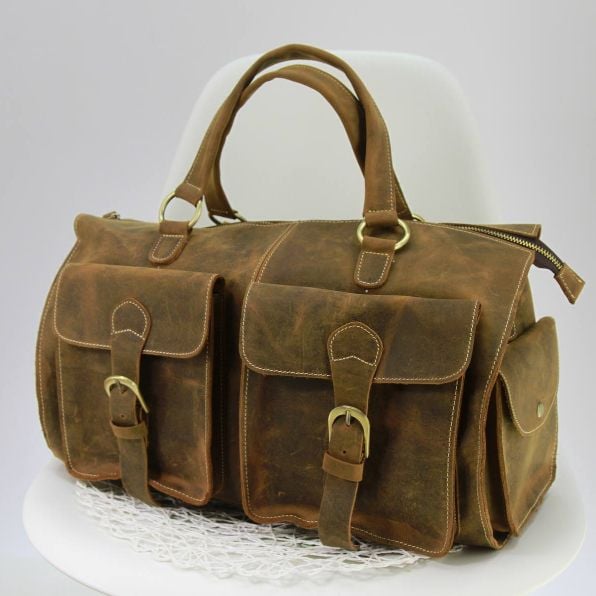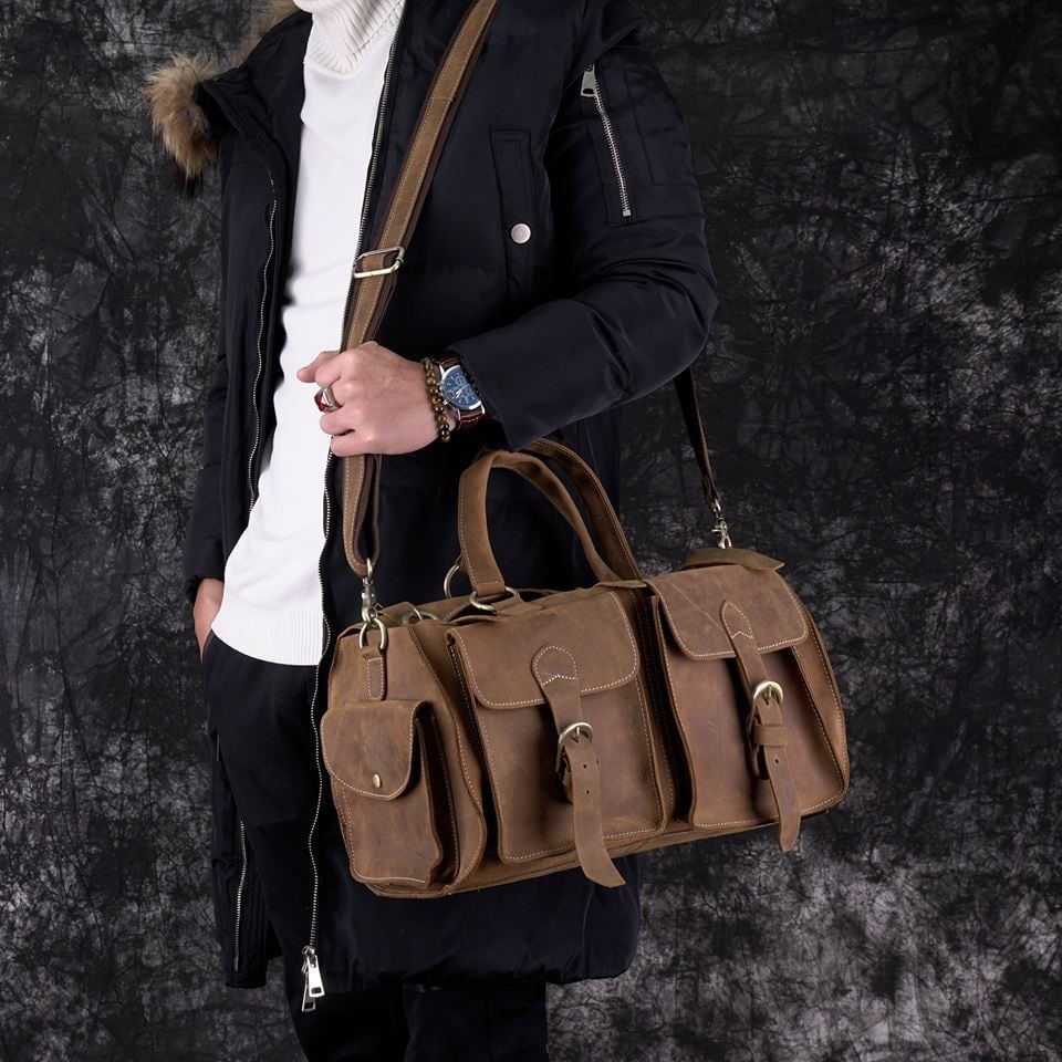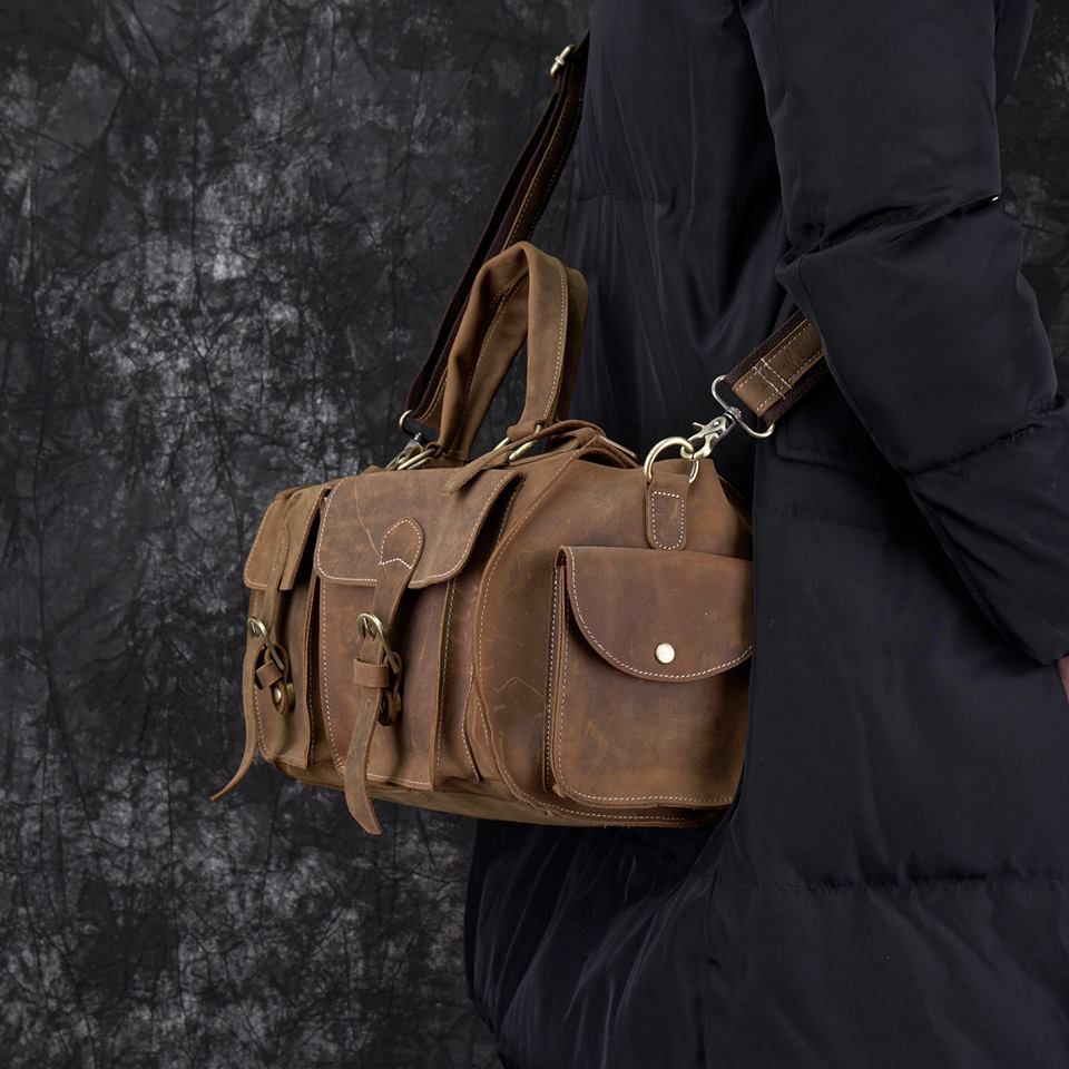 Túi trống da bò sáp nguyên tấm du lịch đa năng