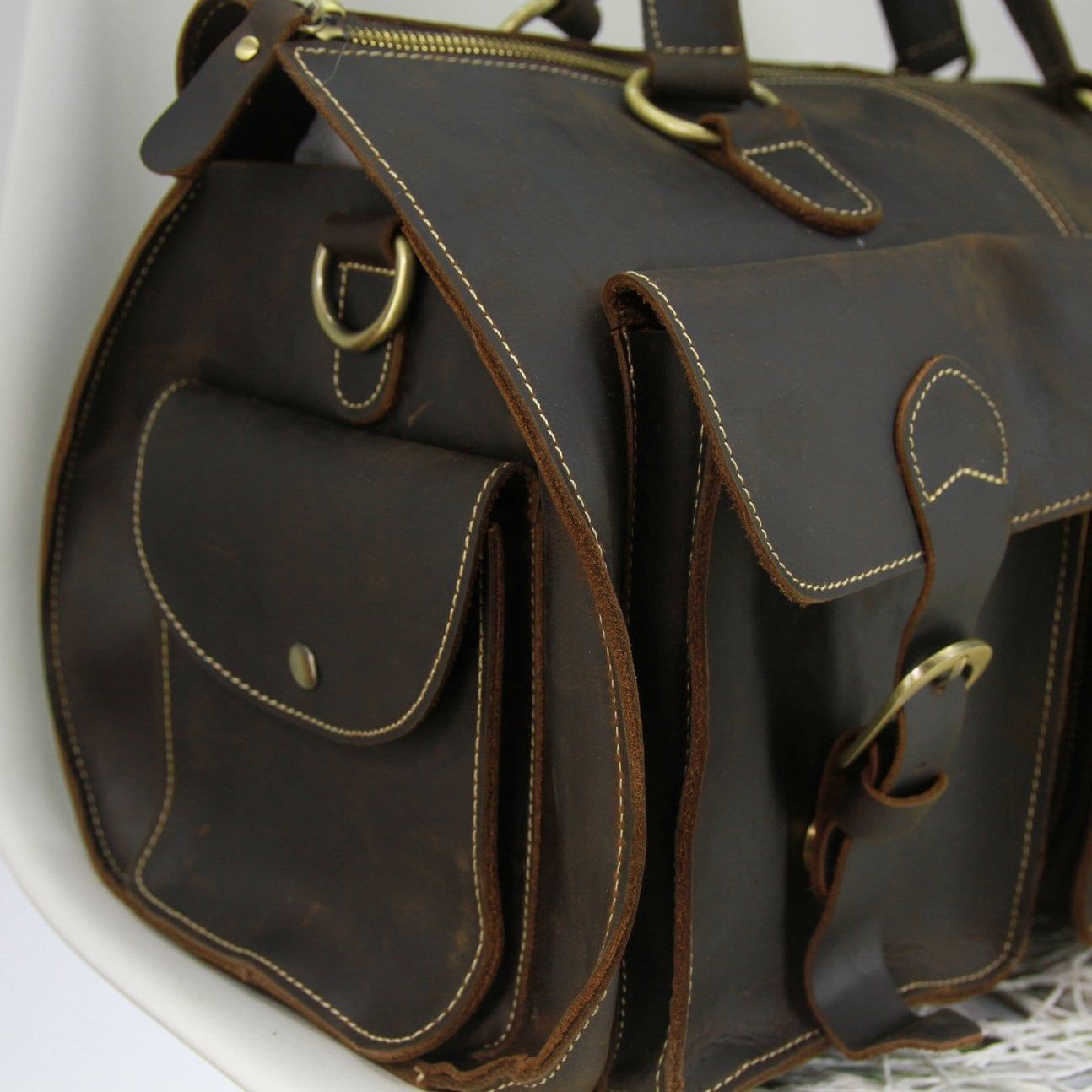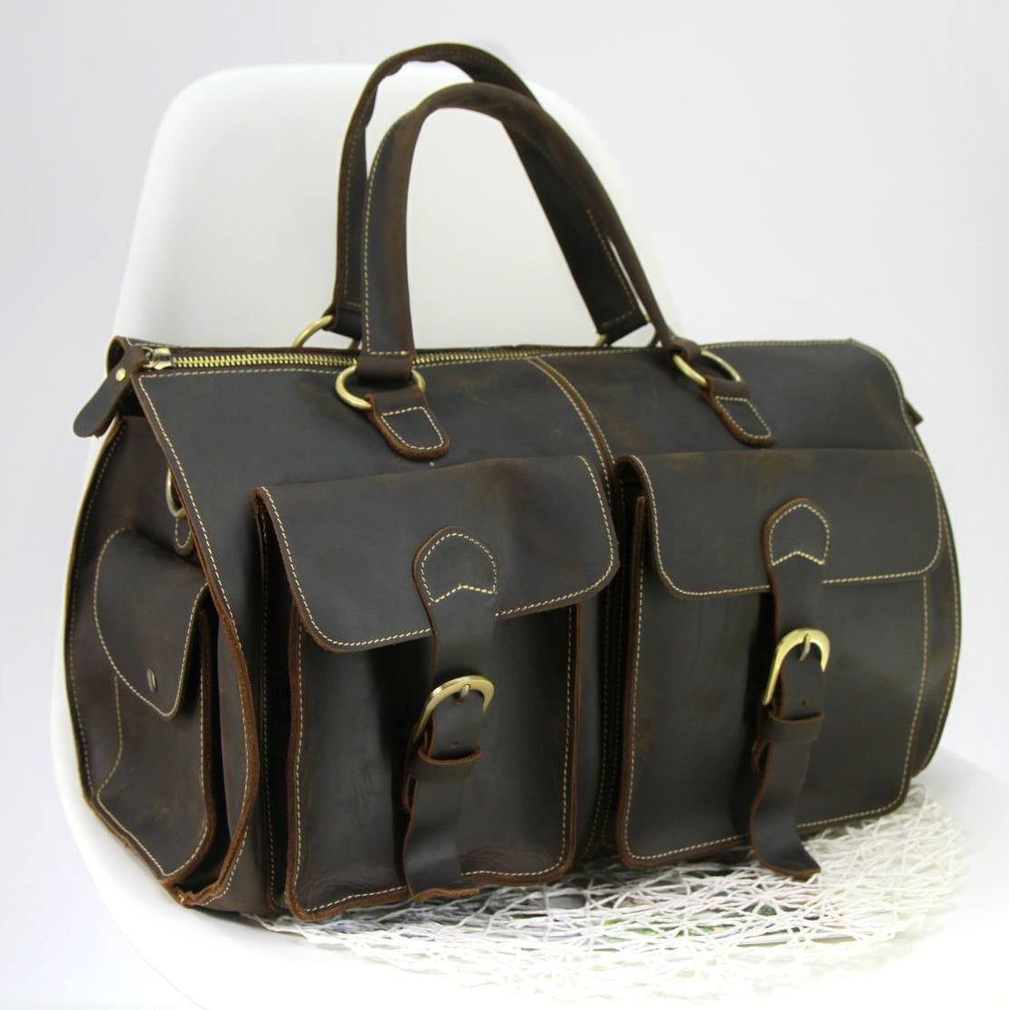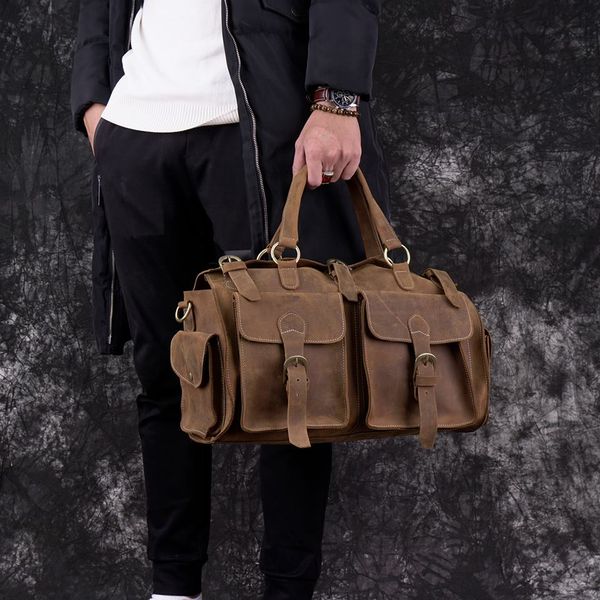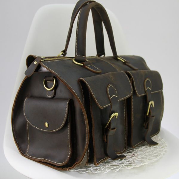 Túi trống da bò sáp nguyên tấm du lịch đa năng
