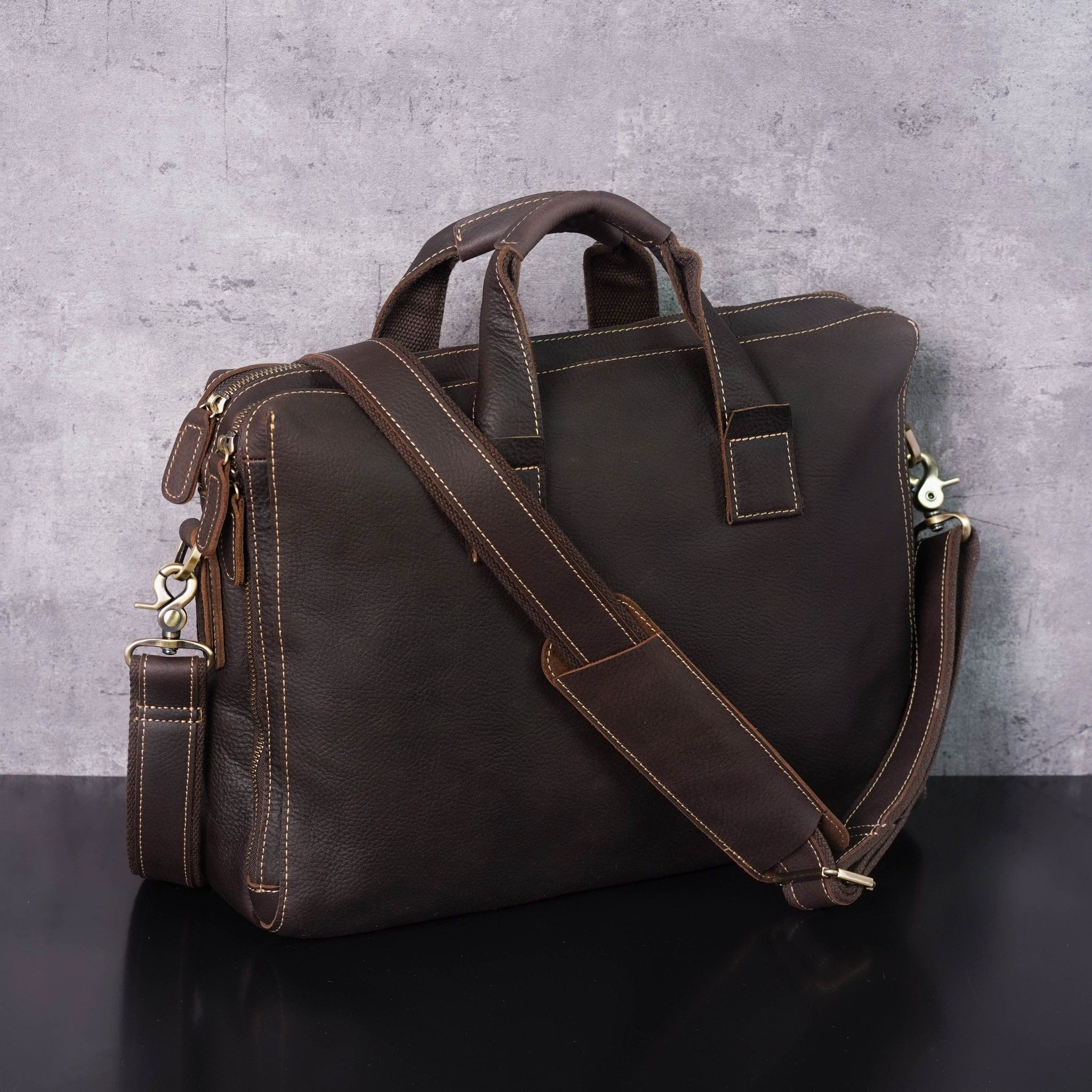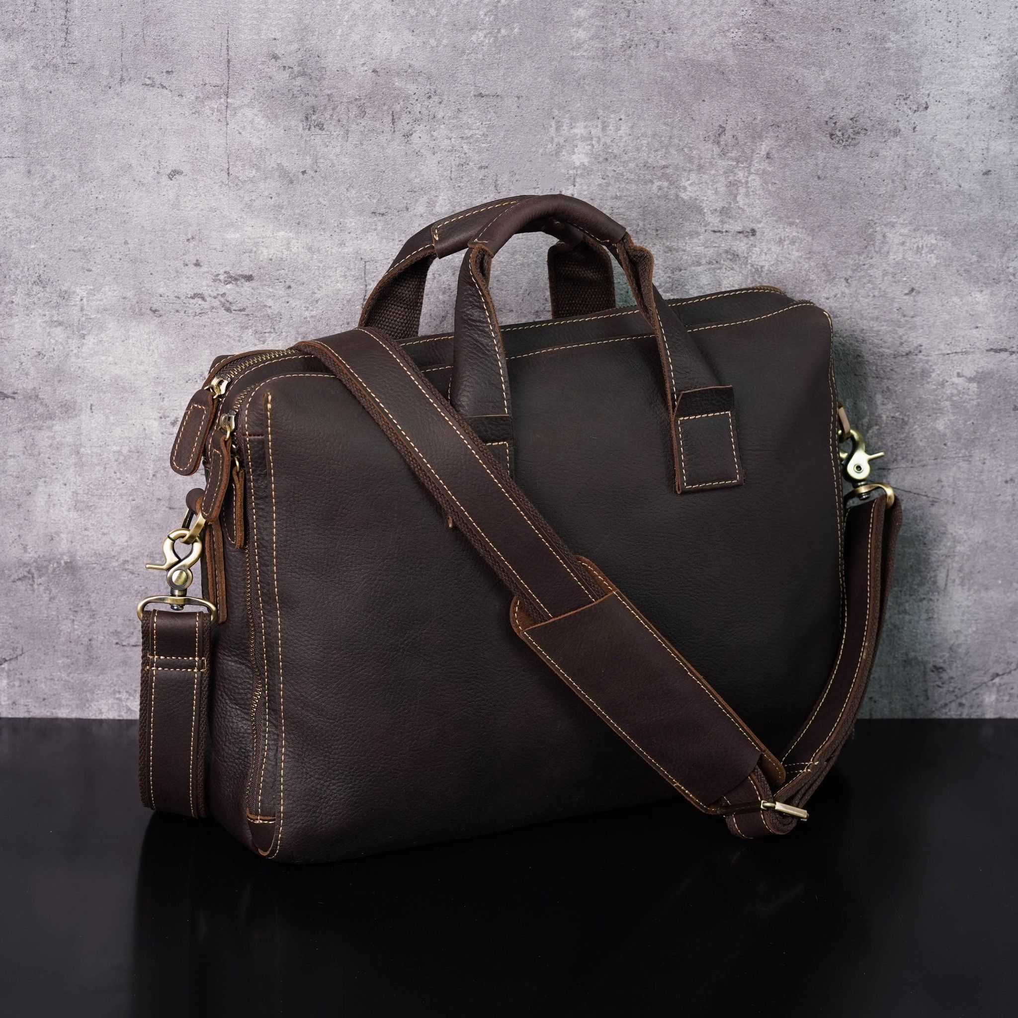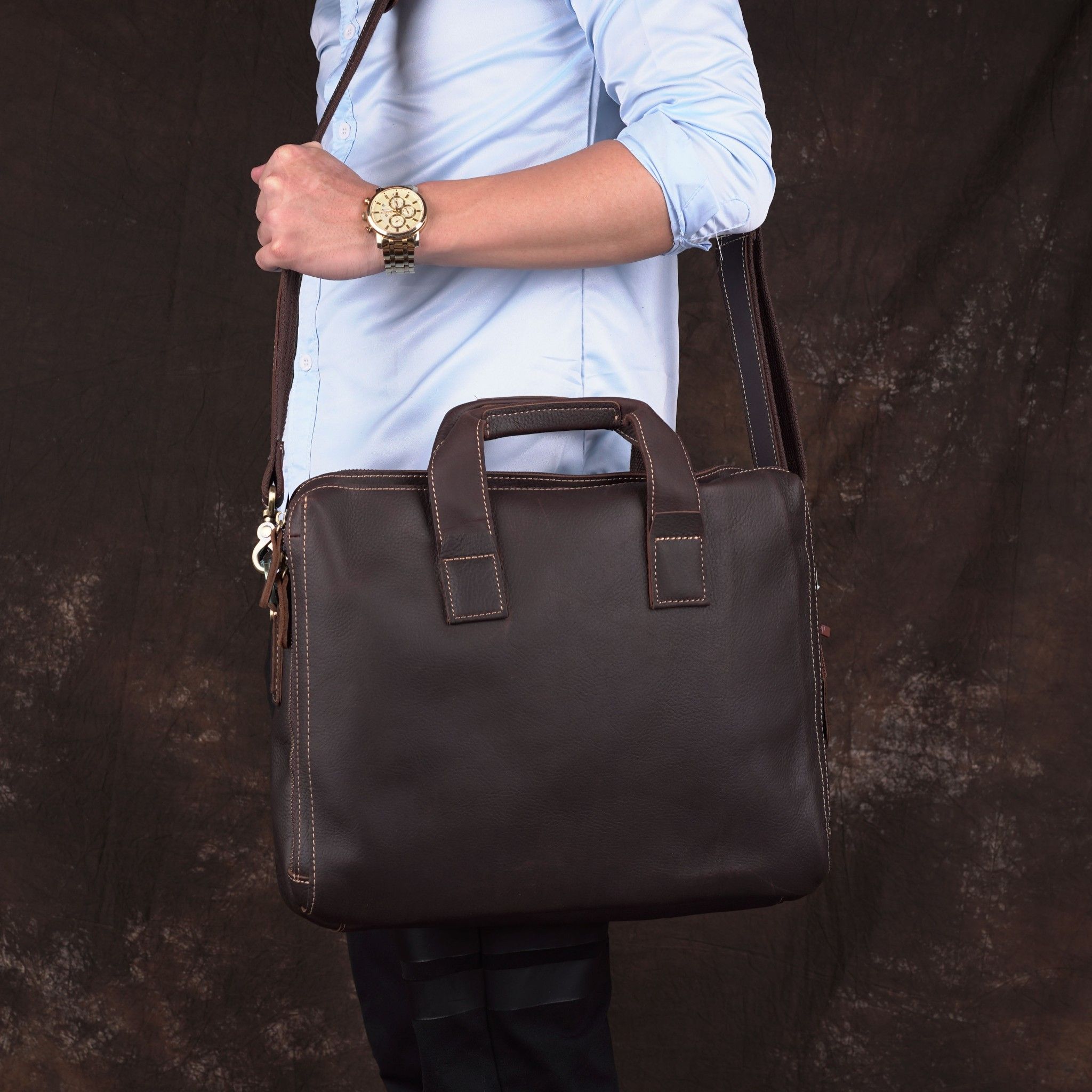 - Chiếc túi được làm từ da bò xịn nguyên tấm qua bàn tay khéo léo của những nghệ nhân lành nghề với thiết kế trẻ trung và có rất nhiều nhiều ngăn.Có thể đựng được Laptop 15.6 inch, iPad,Smartphone,hồ sơ, tài liệu, các vật dụng cá nhân khác.