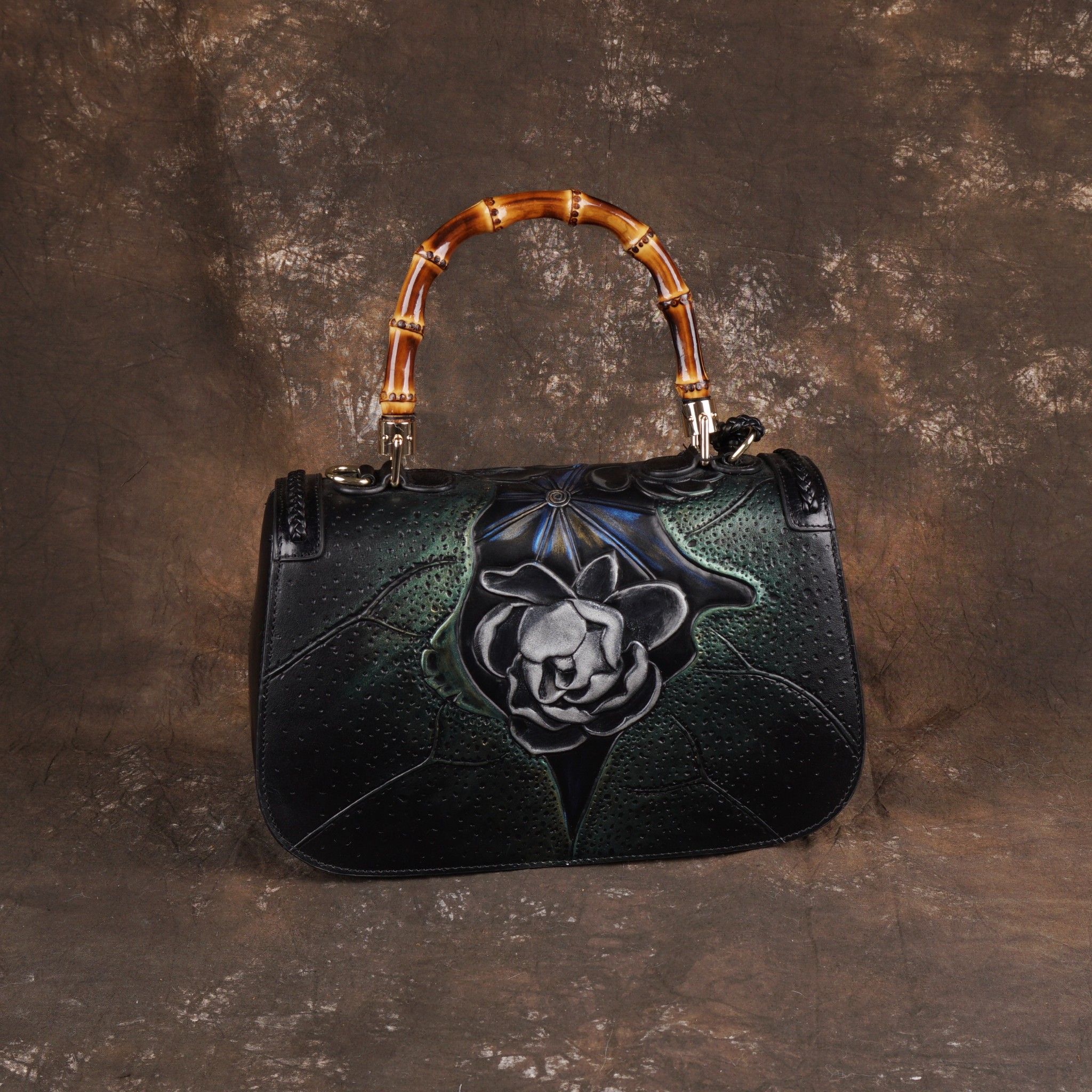Túi xách da thật hoa tiết hoa sen cực chất - 1128273