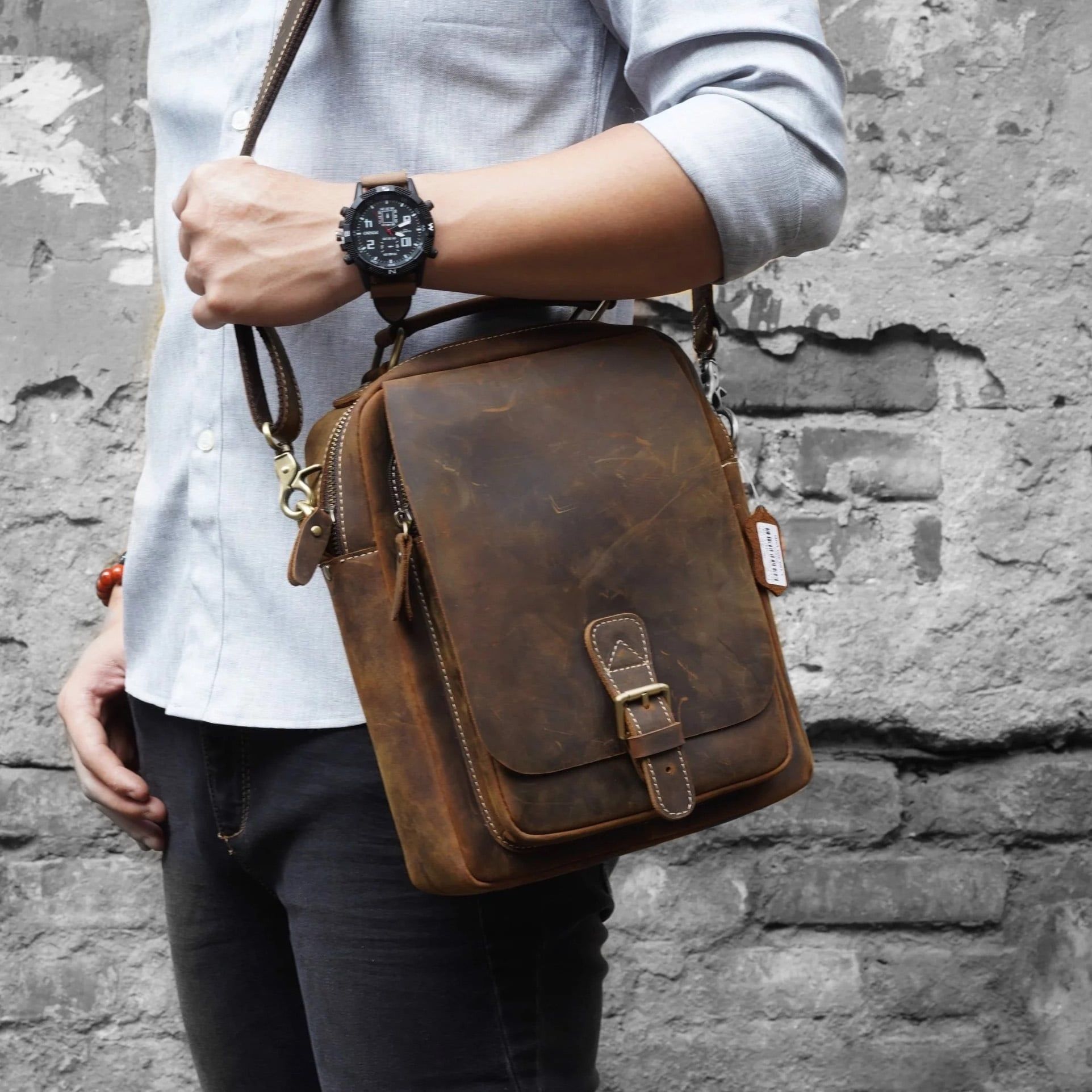 - Các bạn nam có thể tháo dây đeo túi và xách bằng tay hoặc gắn dây đeo túi vào để đeo chéo, đeo vai, đeo sau lưng hoặc trước bụng đều được rất tiện lợi.