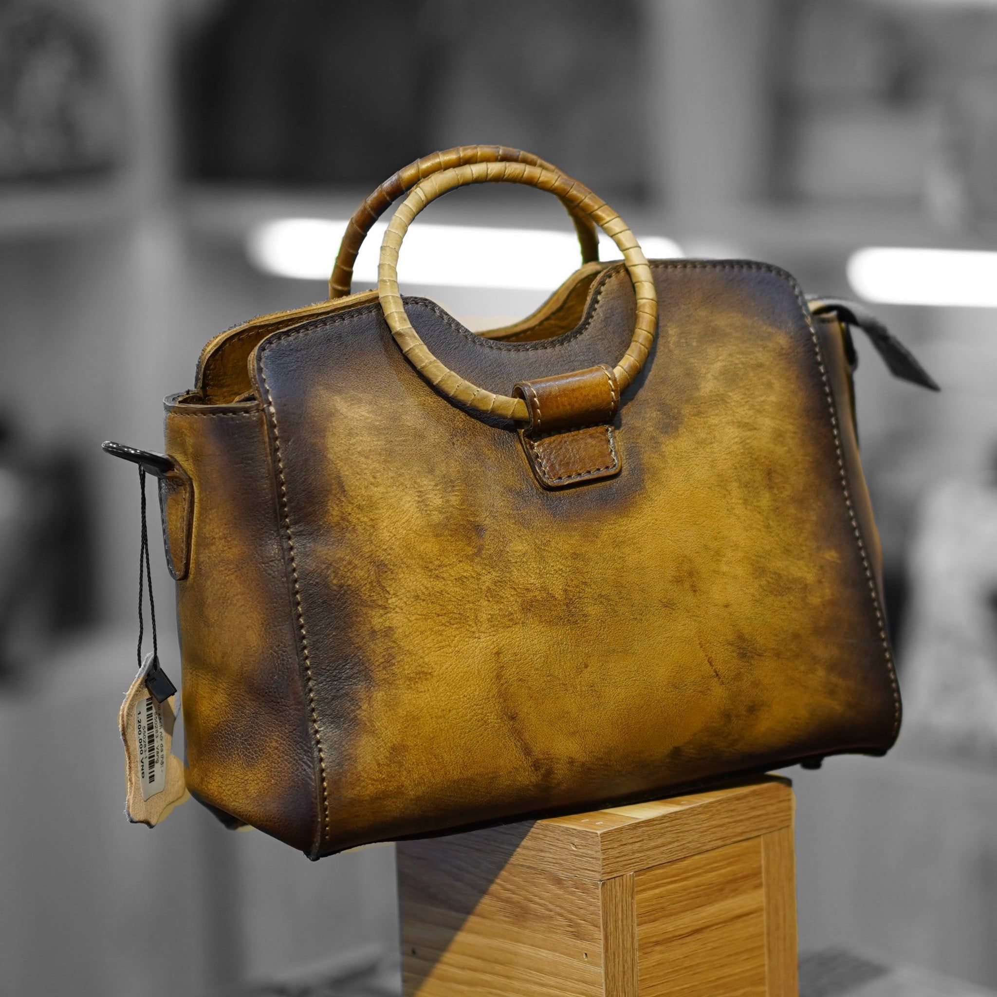 - Phần quai xách khâu dài và tròn đến giữa thân túi với những đường may cẩn thận, chắc chắn làm tăng tính thẩm mỹ của sản phẩm.