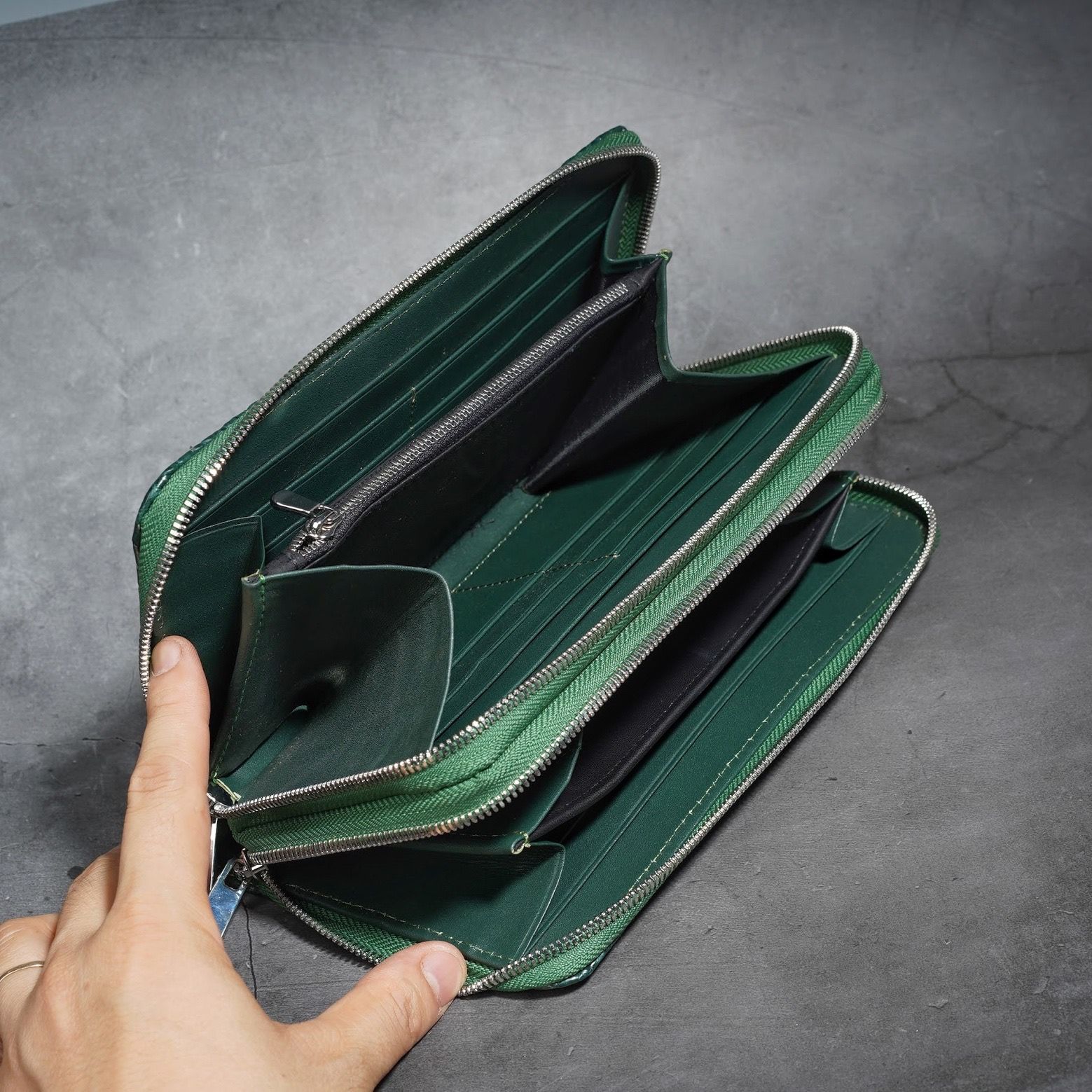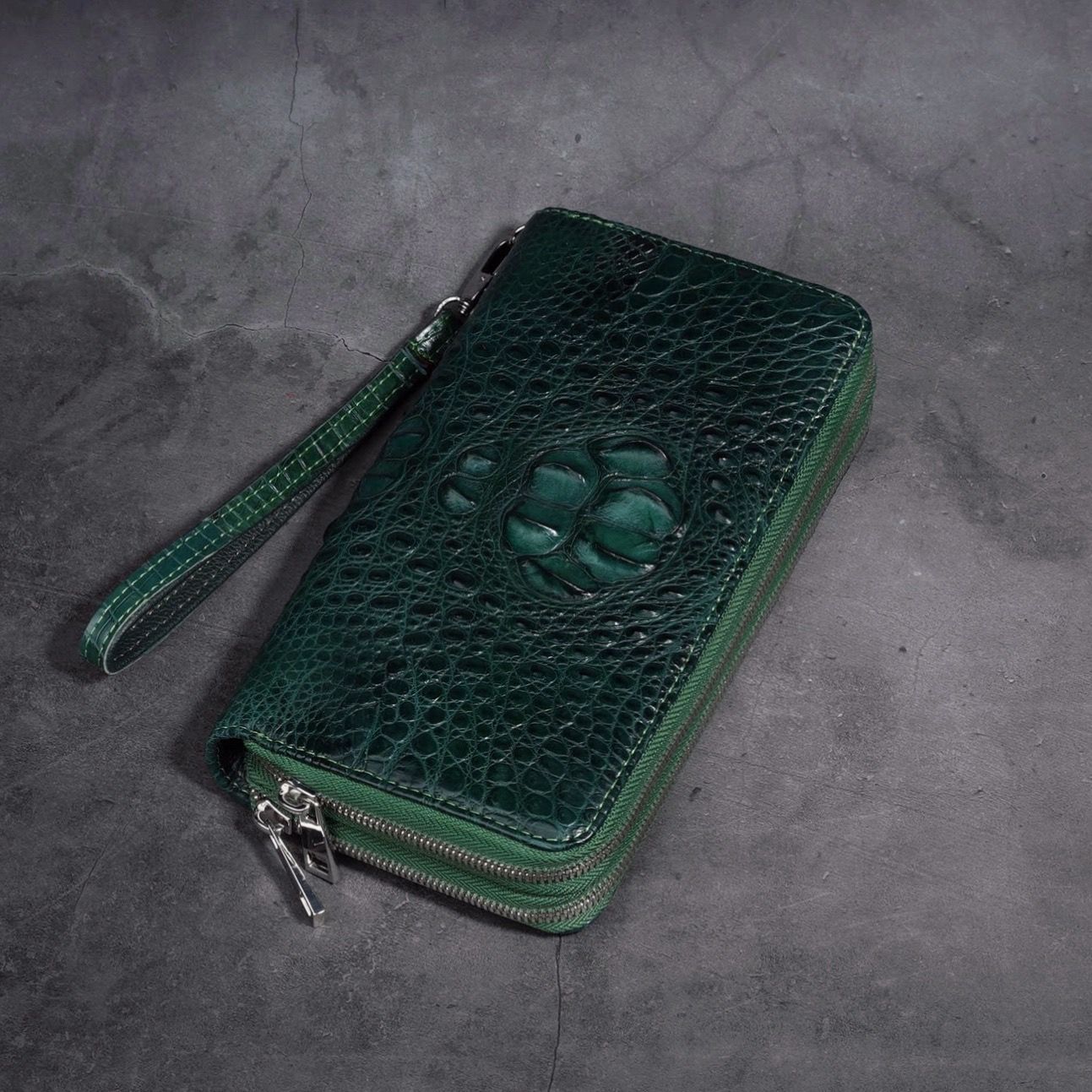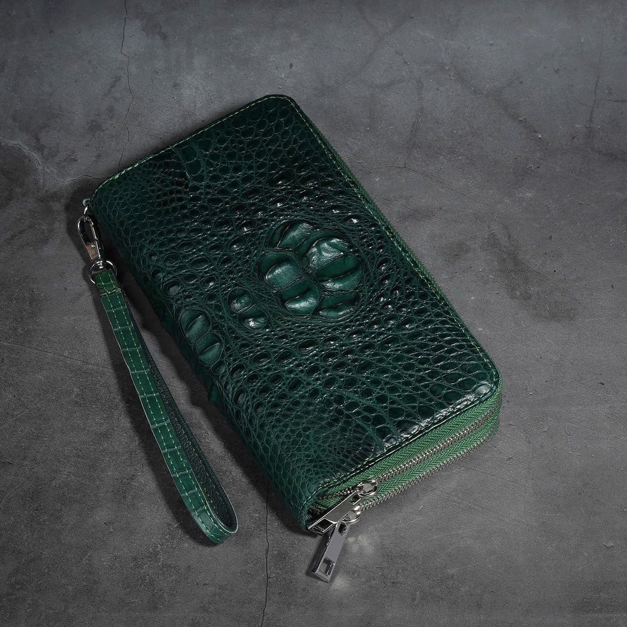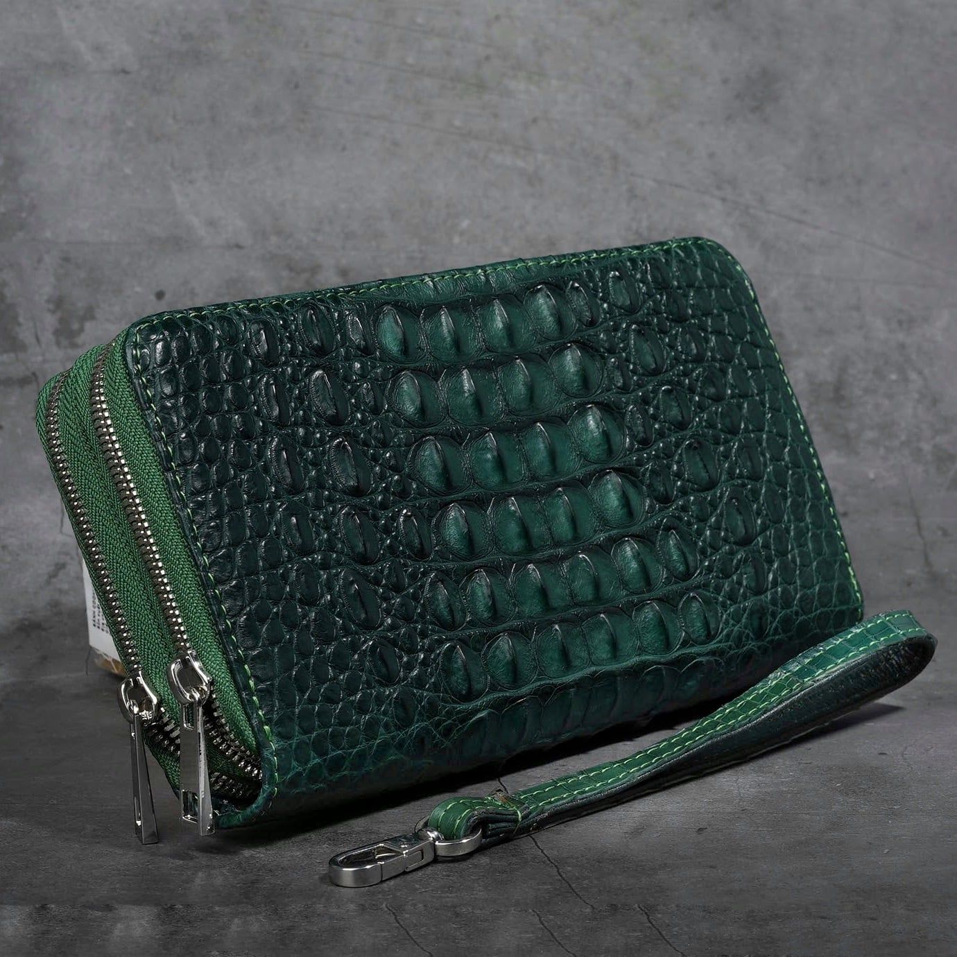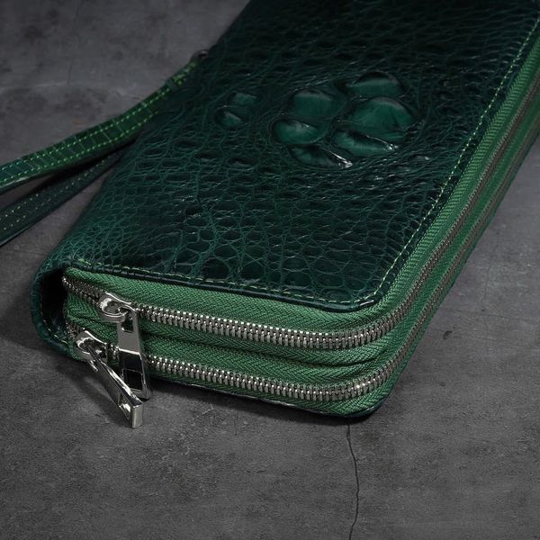 Ví cầm tay Clutch hai khóa kéo gù lưng Cá Sấu cỡ lớn - Xanh lá