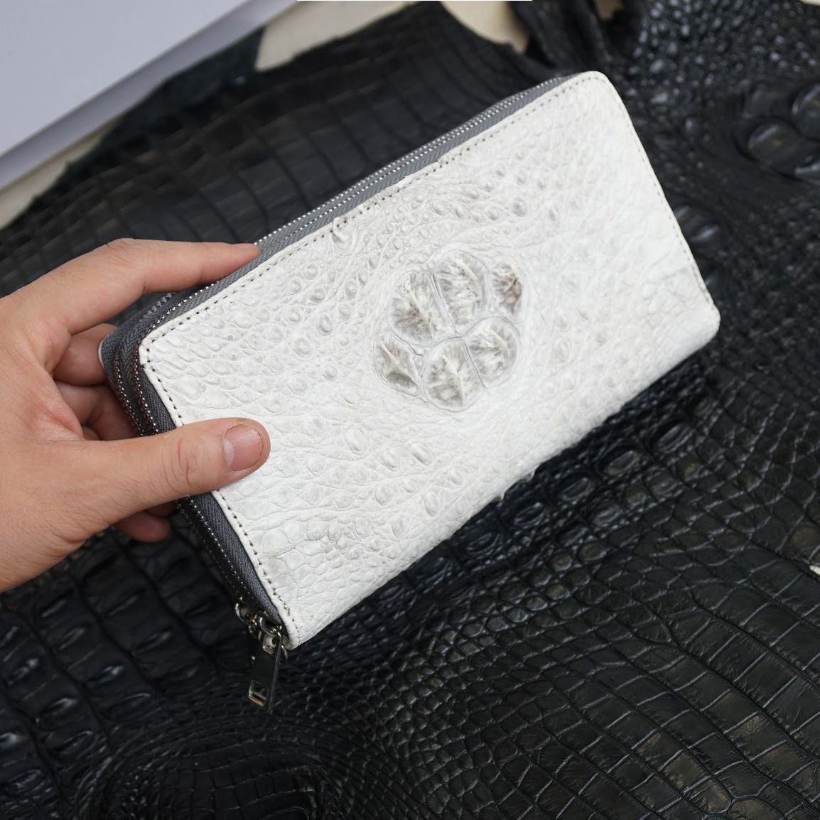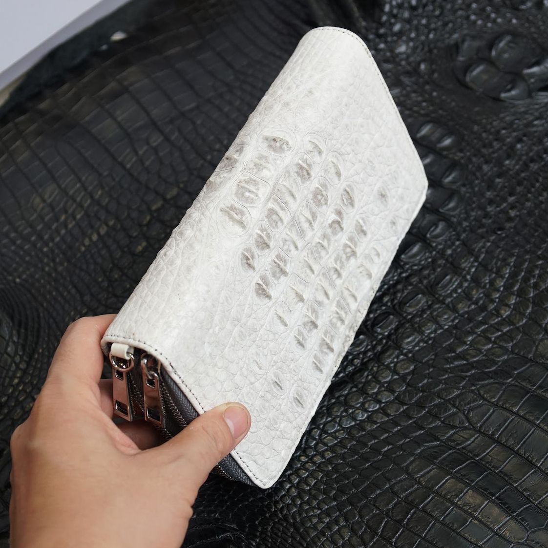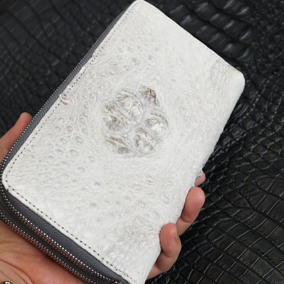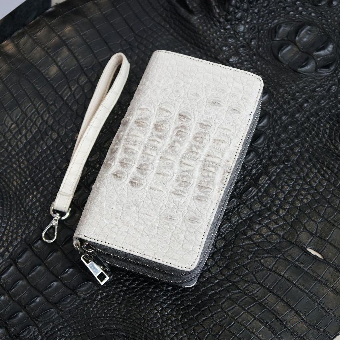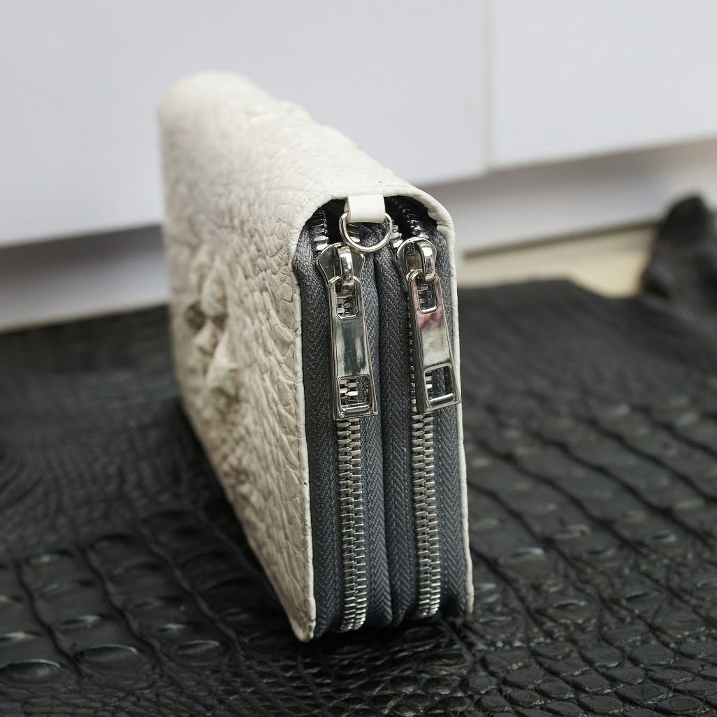 Ví cầm tay hai khóa gù lưng Cá Sấu cỡ đại - Bạch tạng