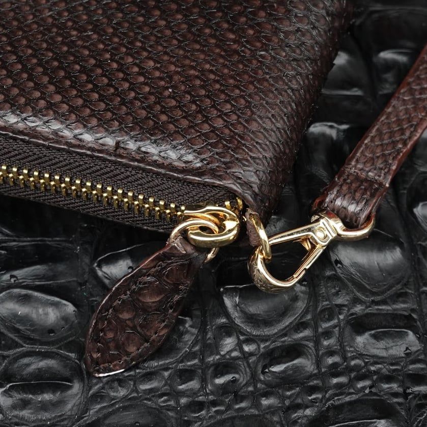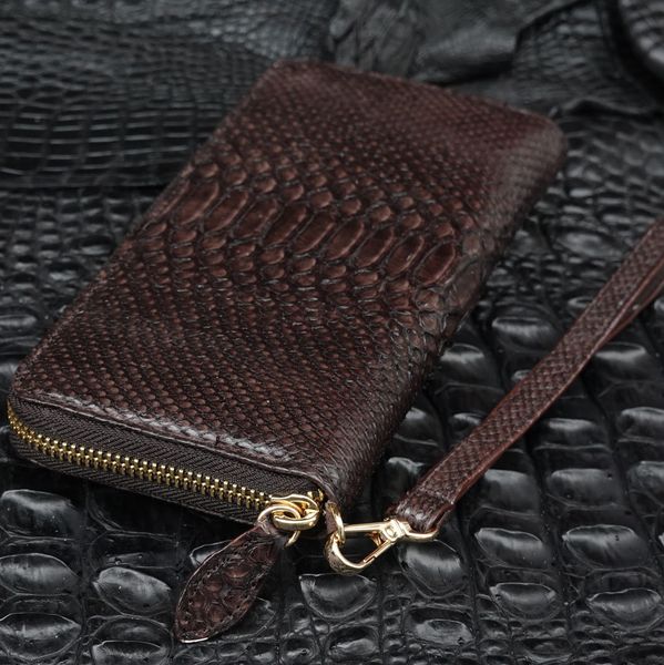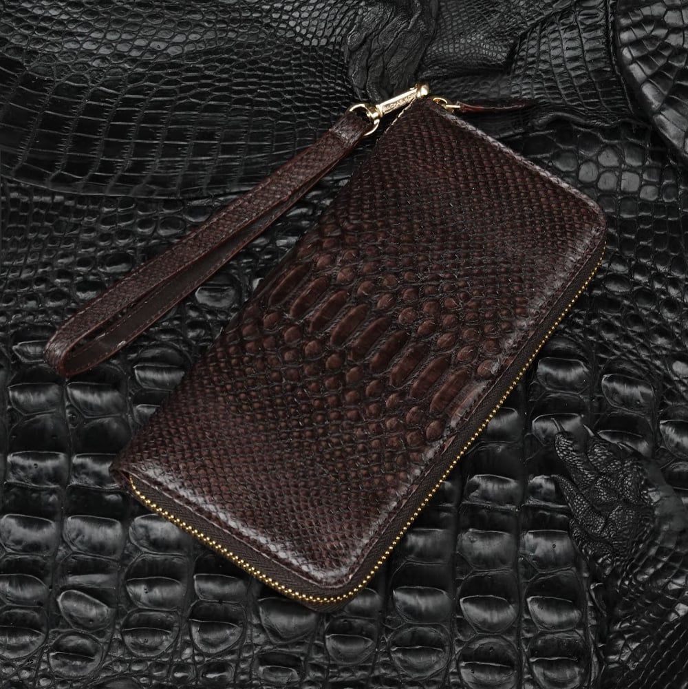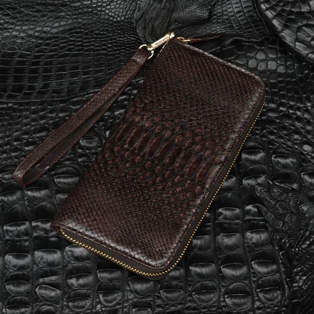Ví cầm tay một khóa cỡ Trung da Trăn - Nâu đậm - 2132