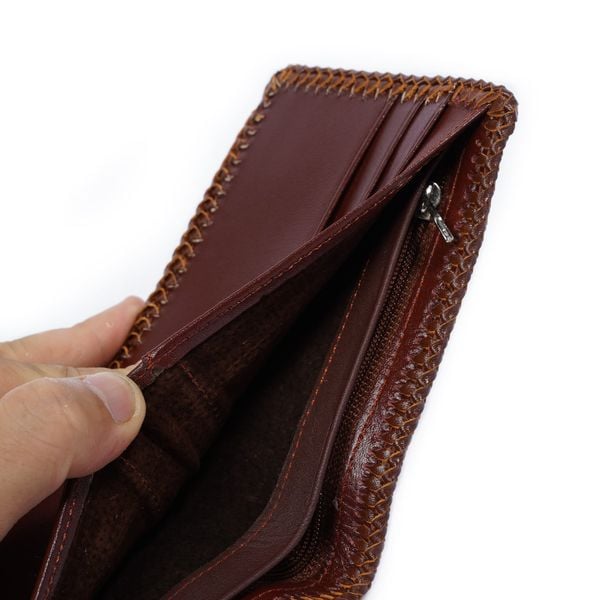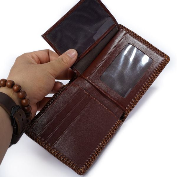 - Mặt trong ví với chất liệu da bò sáp chống thấm nước màu nâu sang trọng. Da thuộc cao cấp cùng thiết kế tỉ mỉ tinh tế đã tạo nên mẫu ví trên cả tuyệt vời.