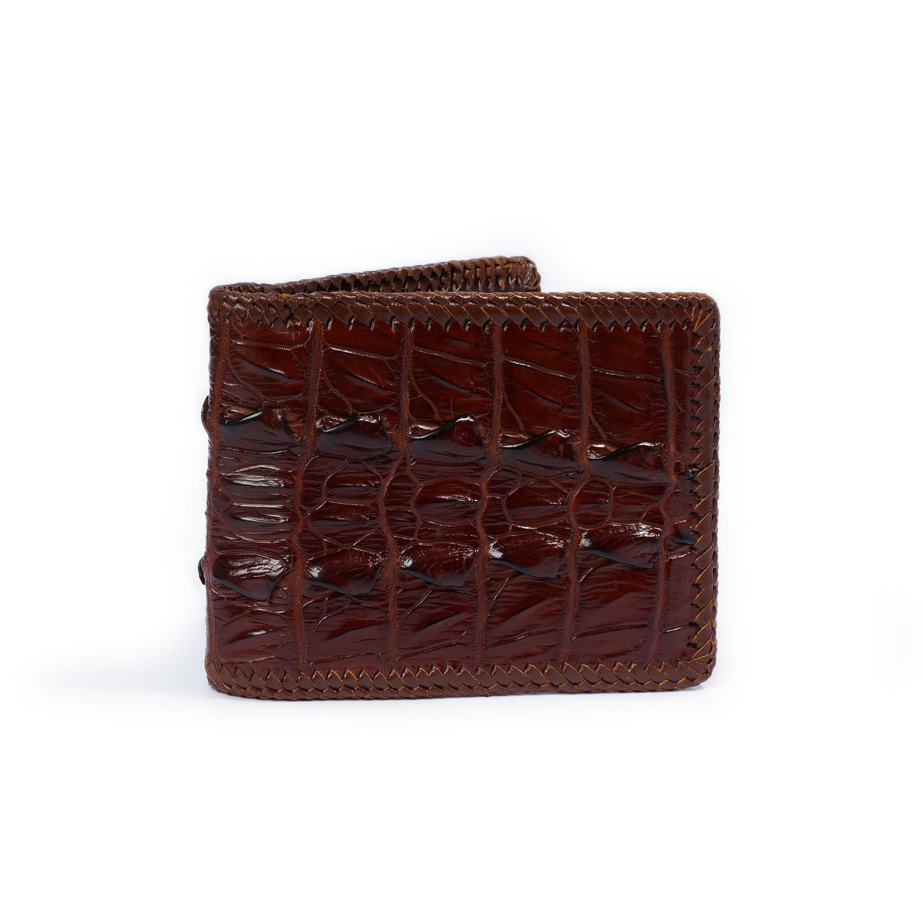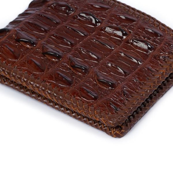 Ví da Cá Sấu đan viền dáng ngang - Nâu Cafe 2172