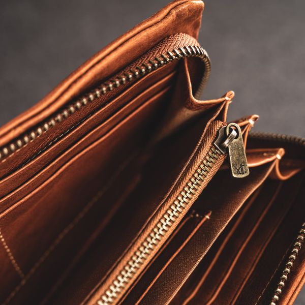 - Khóa kéo phối da chắc chắn cùng dây da ngoắc tay tiện dụng của ví dài da thật đẹp cao cấp - 789121