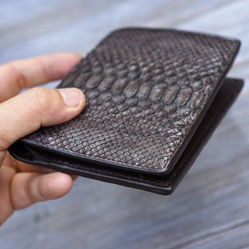 Ví gấp da Trăn dáng đứng - Nâu đậm
