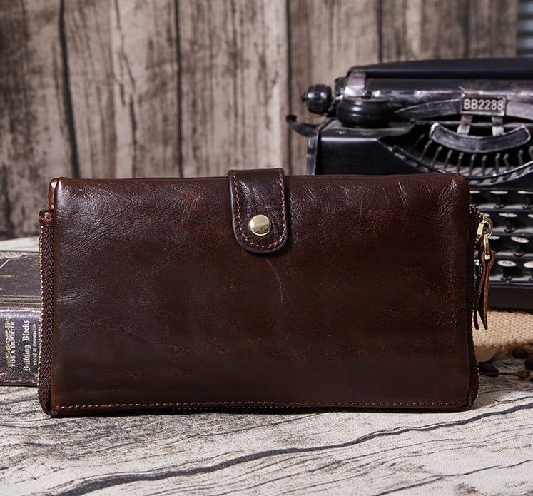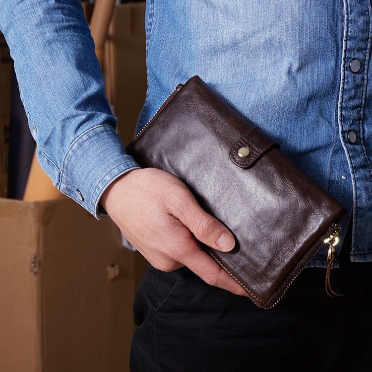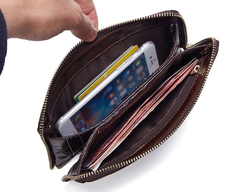 Ví nam cầm tay da thật cao cấp - da bò nguyên miếng