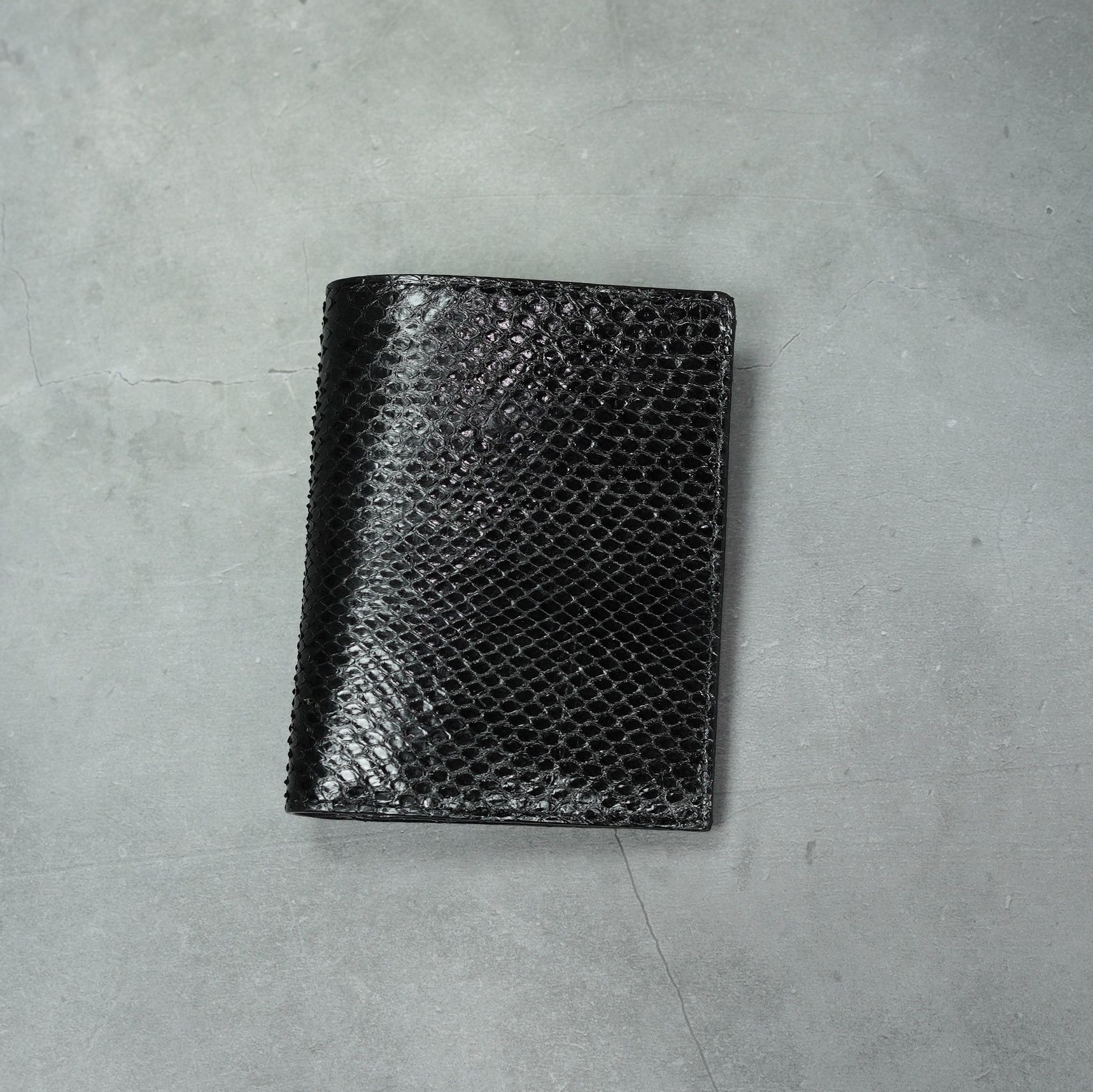 Ví ngắn dáng đứng da Trăn thủ công - Đen