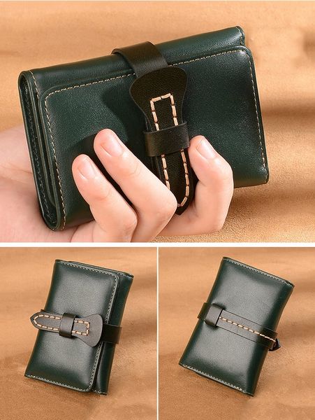 Ví ngắn nữ da thuộc thảo mộc gấp đôi - 1657666